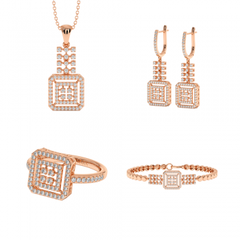 The set includes: 14K gold bracelet with 0.48ct diamonds, 14K gold pendant chain with 0.36ct diamonds, 14K gold earrings with 0.81ct diamonds and 14K gold ring with 0.34ct diamonds. The total weight of the set is approximately 30.20 grams. Go to "SPECIFICATIONS" for more details about this...