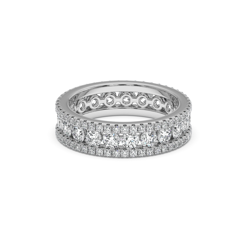 It can also be made to order in 18K gold. We can modify the design according to your budget. We can choose the characteristics of the diamonds (cut, color, clarity, carat) to create the perfect diamond wedding ring.