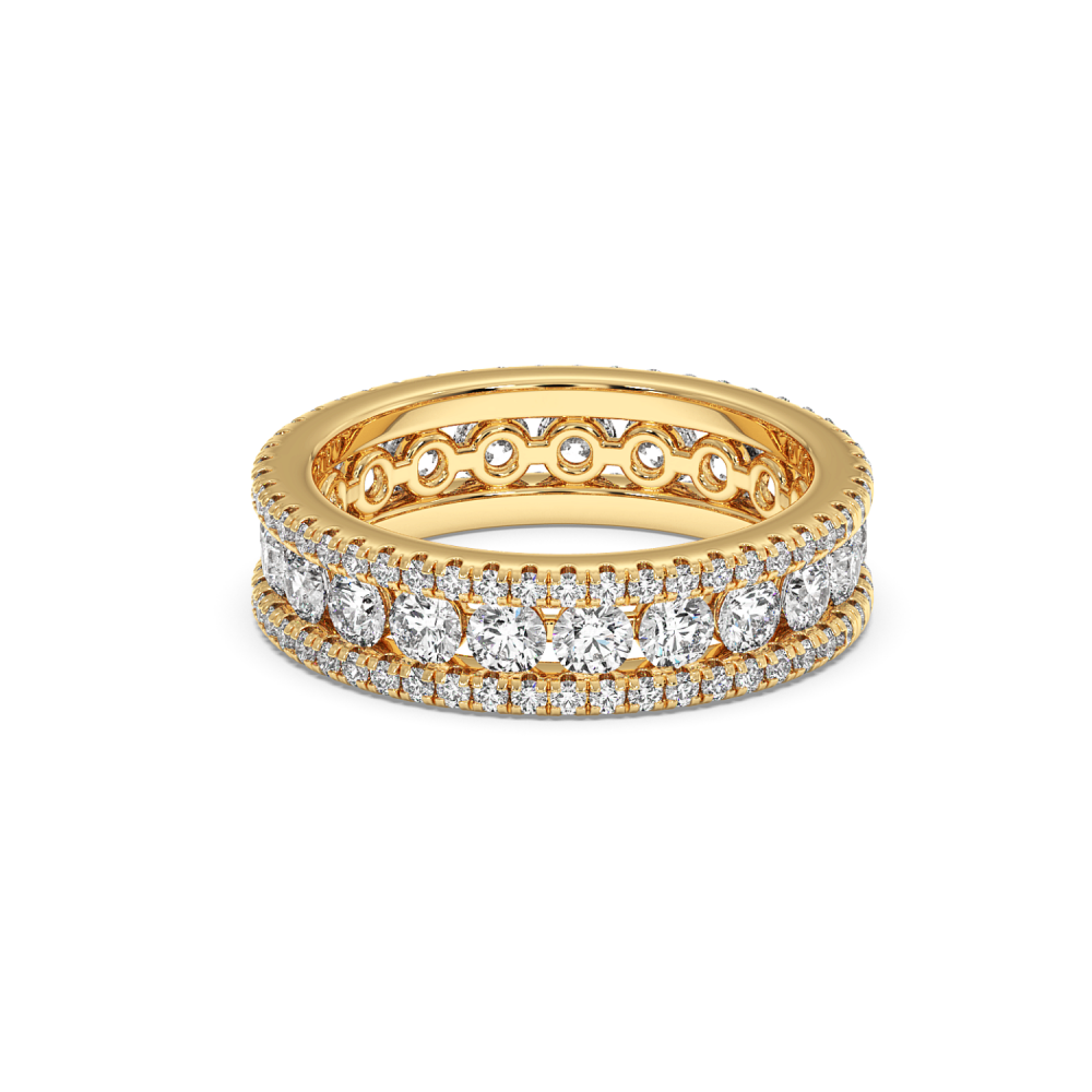 Eternity ring/ring in 14 K gold with 2.12ct diamonds. Weight is approximately 5.70 grams. It can also be made to order in 18K gold. We can modify the design according to your budget. We can choose the characteristics of the diamonds (cut, color, clarity, carat) to create the perfect diamond...