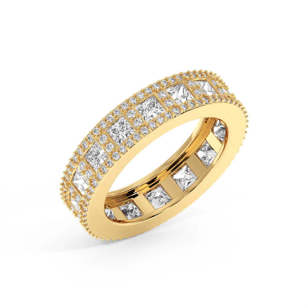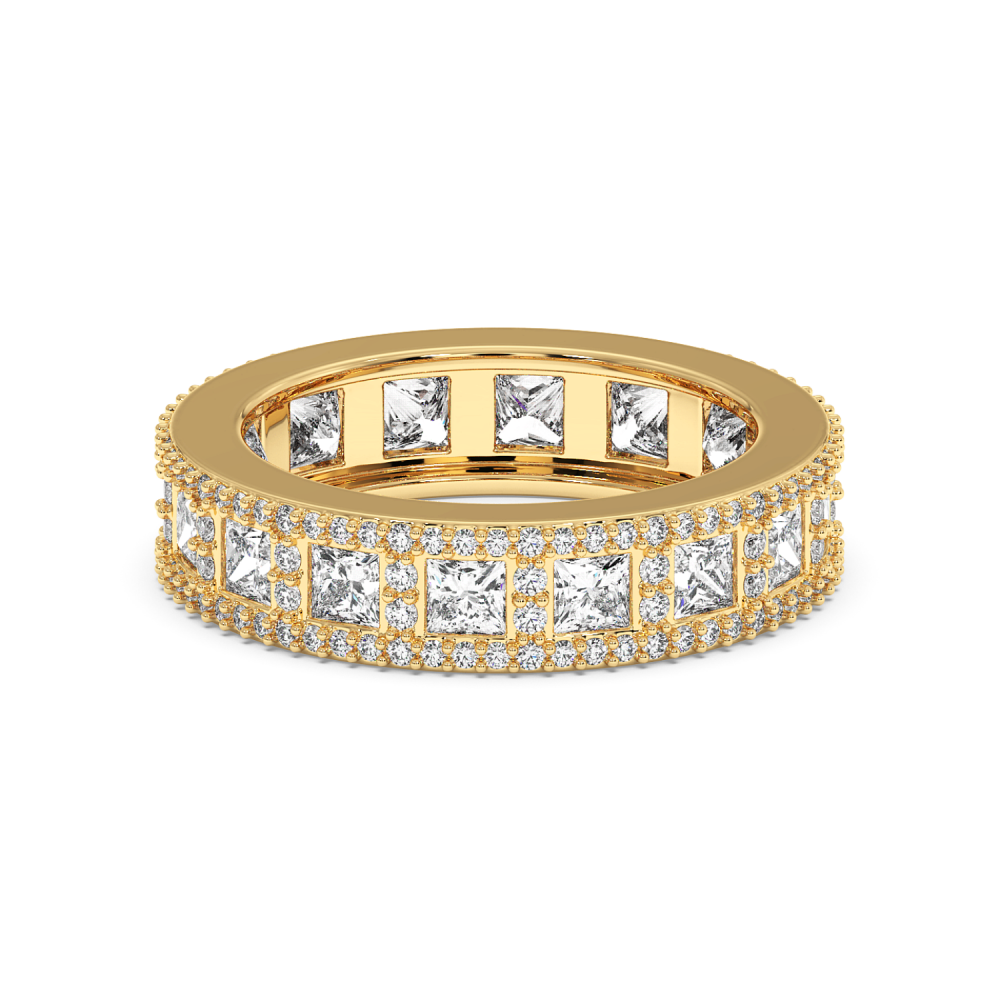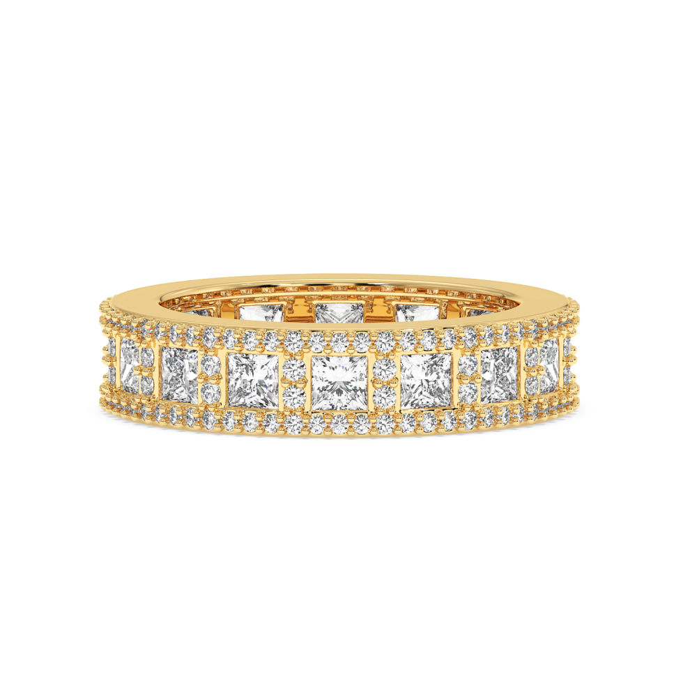 14K white gold Eternity ring/jewels with 2.24ct Princess Cut diamonds and 0.75ct round diamonds. Ring weight is 5 grams. We can modify the design according to your budget. We can choose the characteristics of the diamonds (cut, color, clarity, carat) to create the perfect diamond ring. Go...