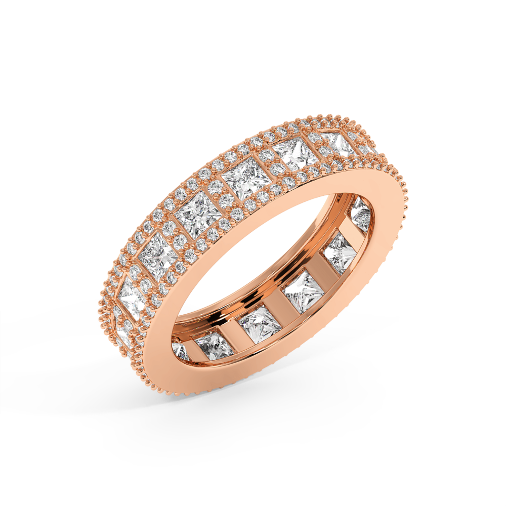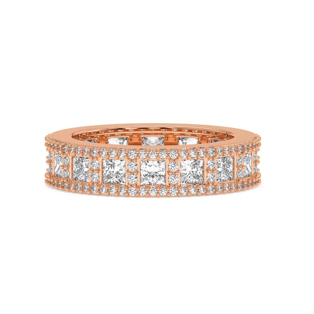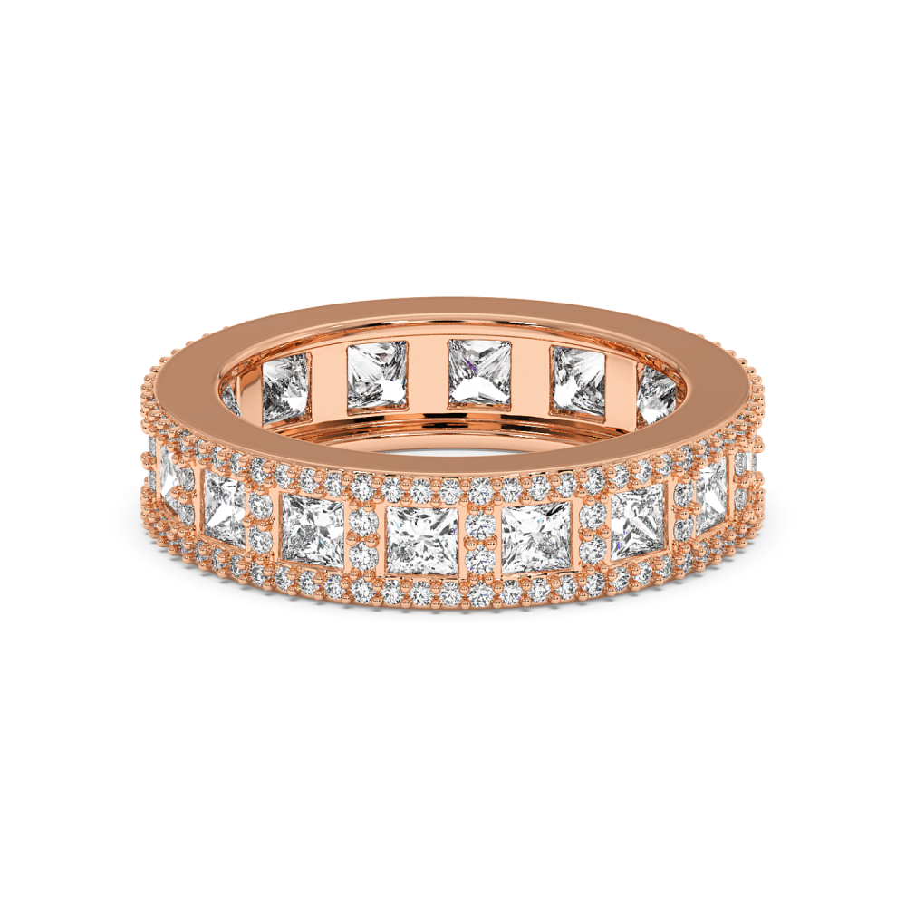 14K white gold Eternity ring/jewels with 2.24ct Princess Cut diamonds and 0.75ct round diamonds. Ring weight is 5 grams. We can modify the design according to your budget. We can choose the characteristics of the diamonds (cut, color, clarity, carat) to create the perfect diamond ring. Go...