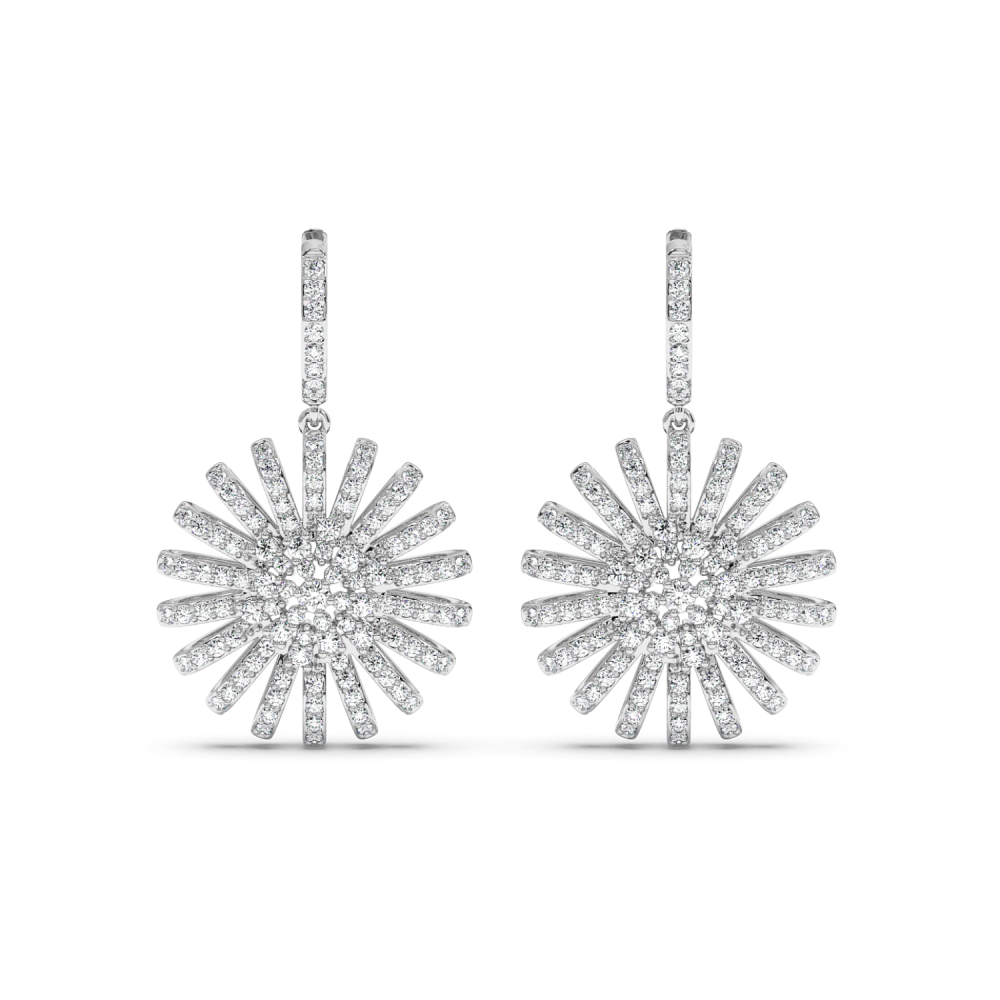 14 K white gold earrings with 2.64 ct diamonds. The earrings weigh 12.74 grams.
