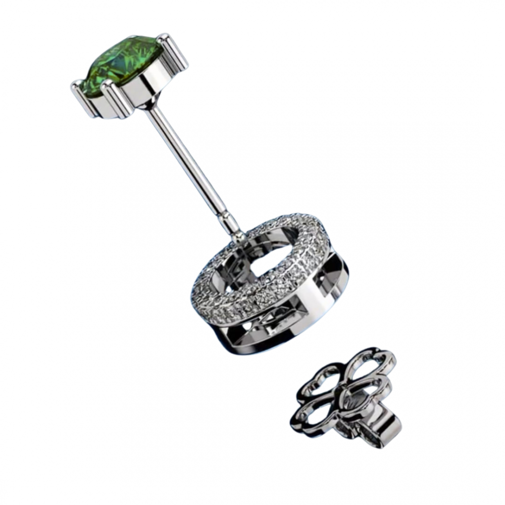 Three-piece earrings in 14 K white gold, with 0.44 ct. diamonds and 1.38 ct. emeralds. The weight of the earrings is 4.15 grams.