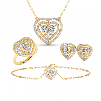 The set includes: 14K gold bracelet with 0.95 ct diamonds, 14K gold pendant chain with 0.95 ct diamonds, 14K gold earrings with 1.49 ct diamonds and 14K gold ring with 0.83 ct diamonds. The total weight of the set is approximately 13.53 grams. Go to "SPECIFICATIONS" for more details about...