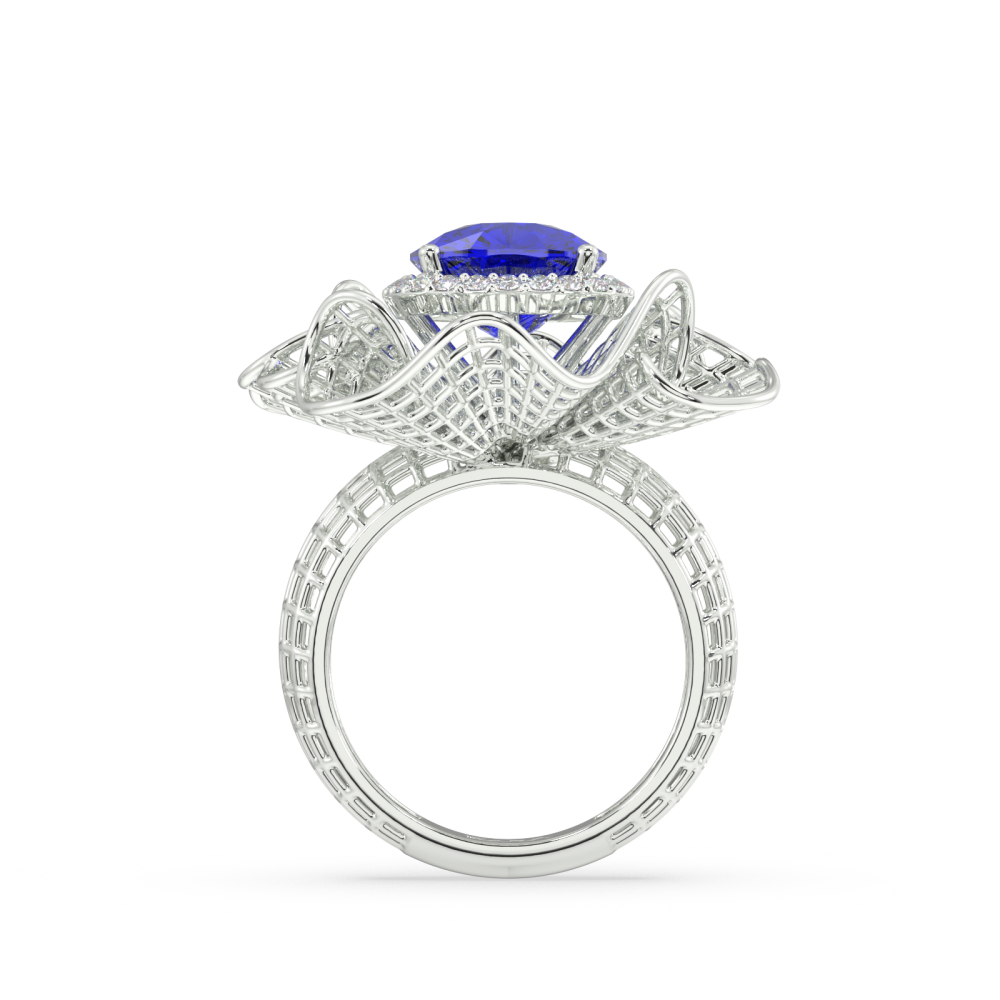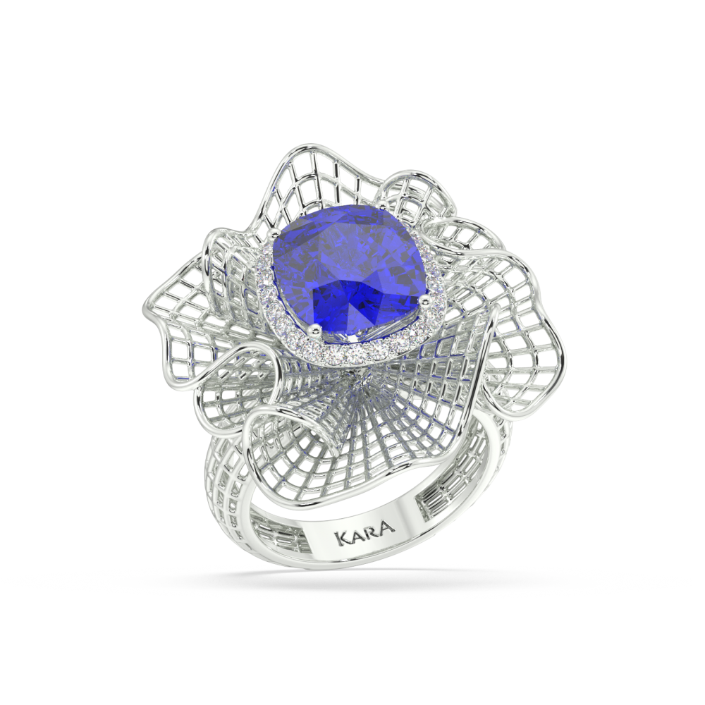 Ring in 14K white gold, with side diamonds of 0.21 ct and central tanzanite of 6.20 ct. Ring weight is approximately 12.50 grams. We can modify the design according to your budget. We can choose the characteristics of the diamonds (cut, color, clarity, carat) to create the perfect diamond...