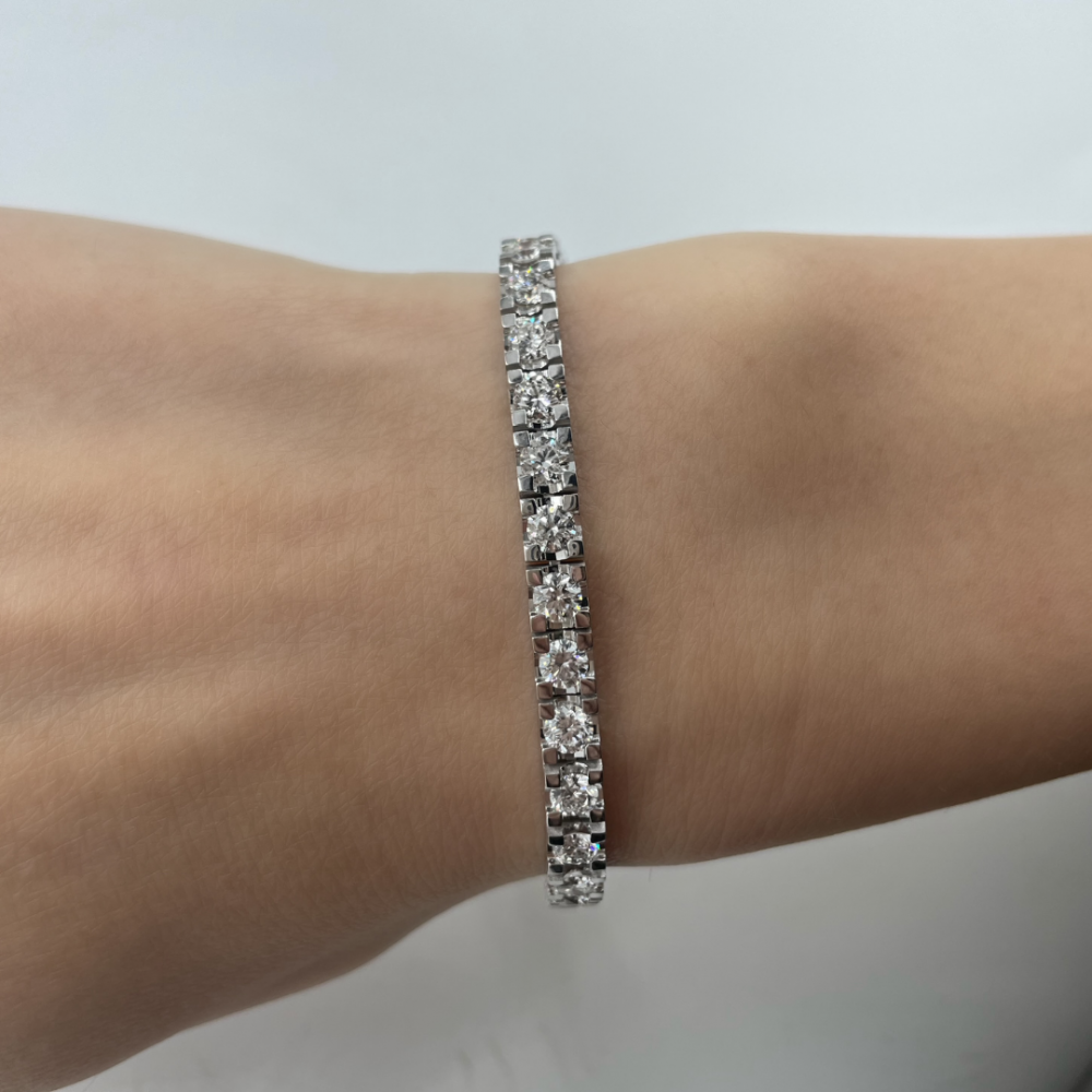 Tennis bracelet in 14K white gold with 6.84 ct diamonds. The weight of the bracelet is 19.11 grams. Go to "SPECIFICATIONS " for more details about this product. For an accurate diamond valuation, please refer to the chart below: