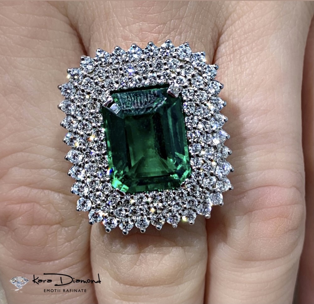 14K white gold ring, with 8.22 ct Green Citrine center and 2.28 ct diamonds. Ring weight is approximately 10.76 grams. The ring can also be made to order in 18K gold. We can modify the design according to your budget. Go to "SPECIFICATIONS" for more details about this product. For an...