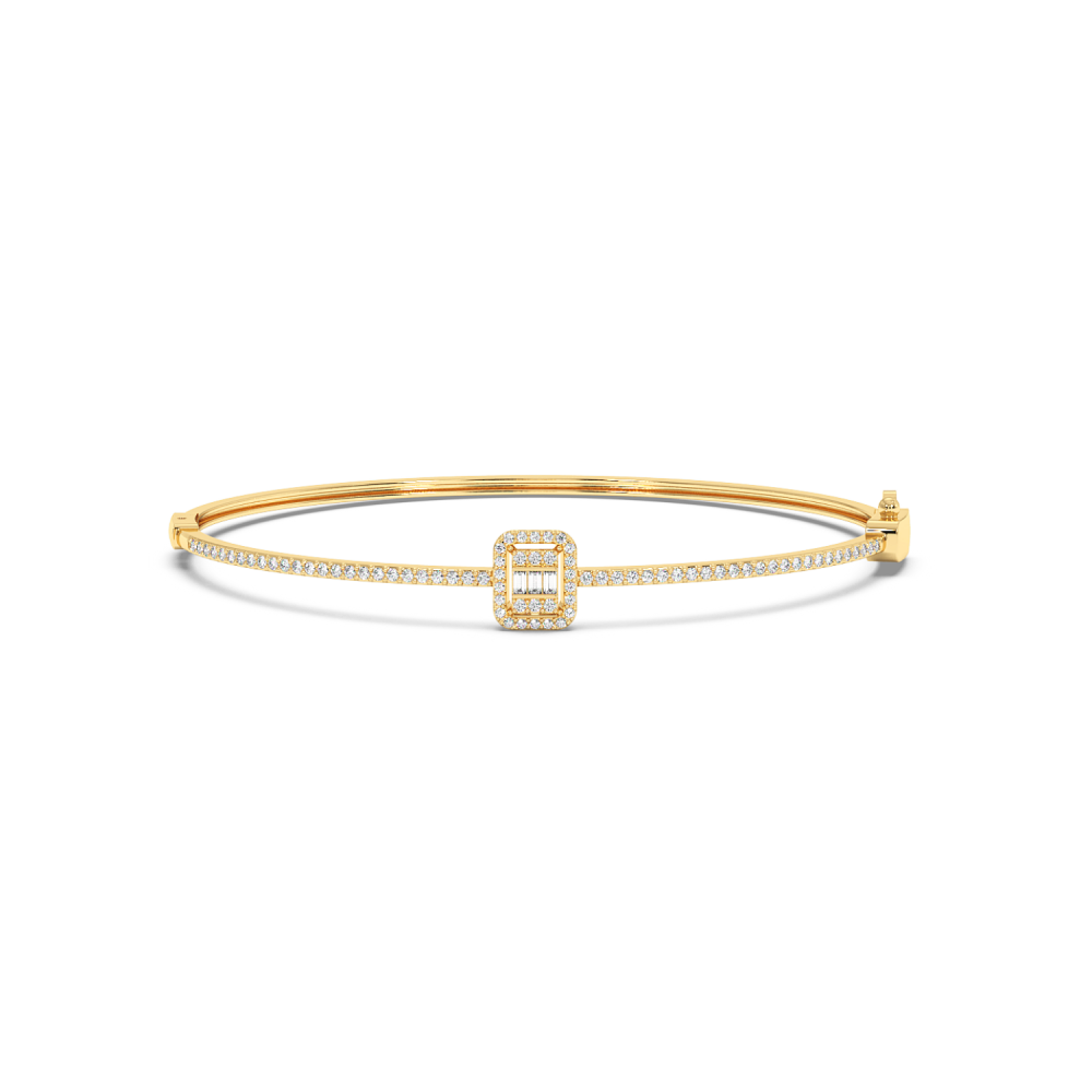 14k white gold bracelet with baguette diamonds of 0.06 ct and round diamonds of 0.34 ct. The weight of the bracelet is 4.59 grams.