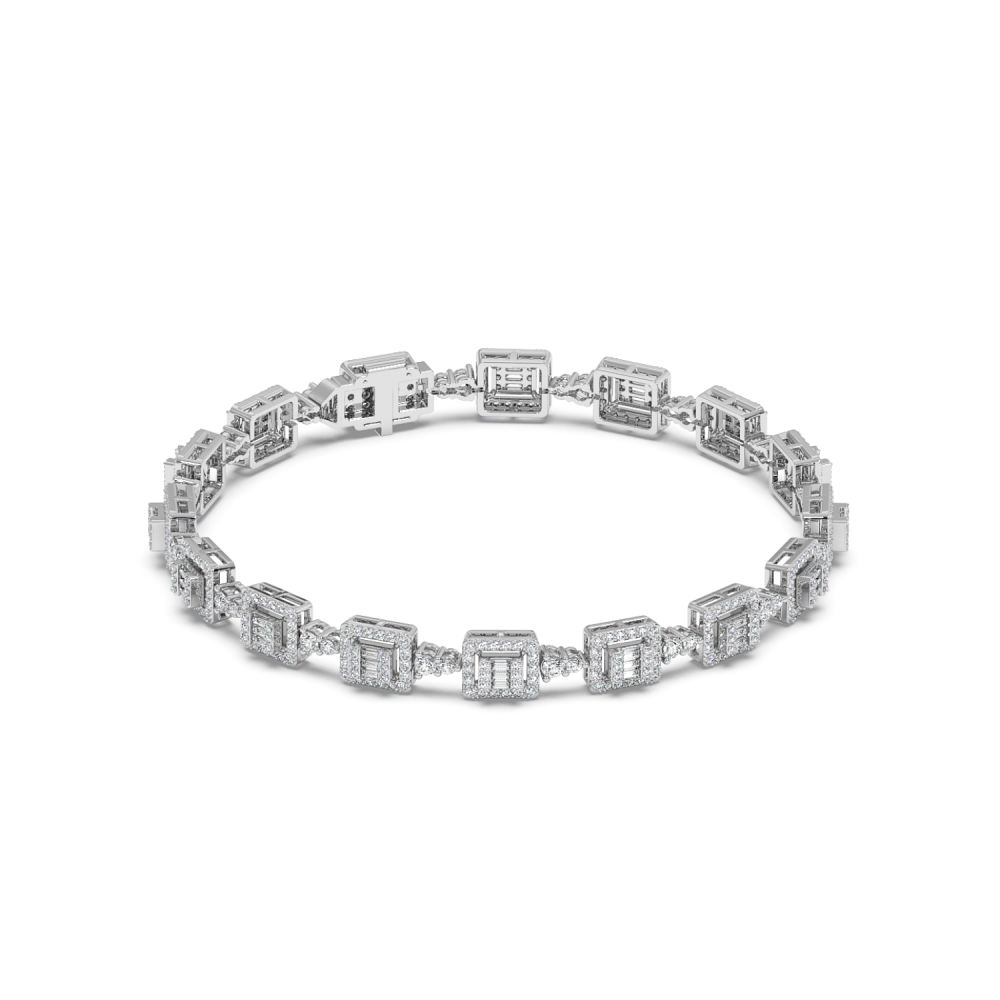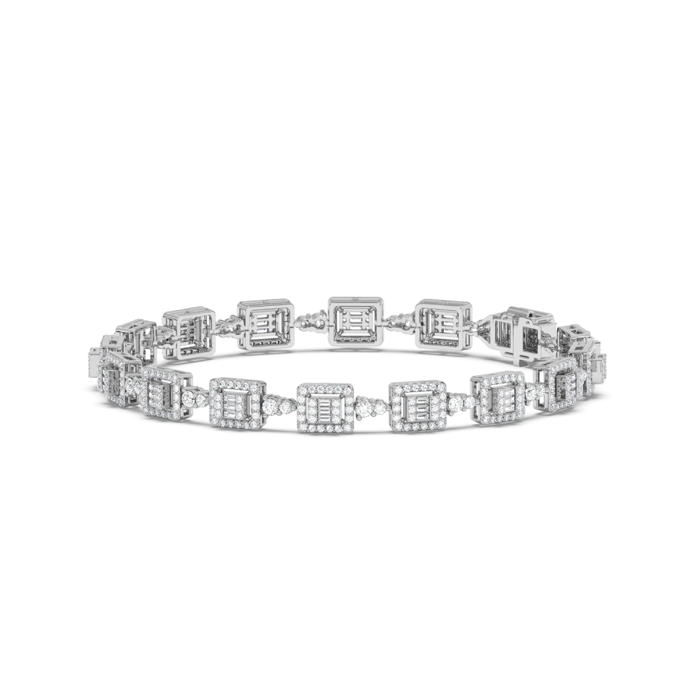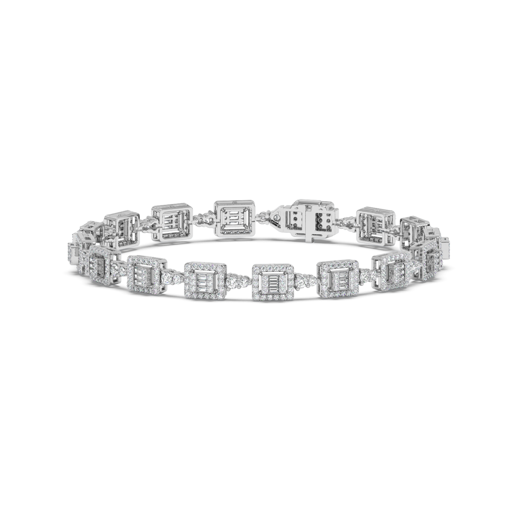 18 K white gold bracelet with 0.57 ct diamonds and 1.73 ct diamonds. The weight of the bracelet is approximately 12.25 grams. Go to "SPECIFICATIONS" for more details about this product.