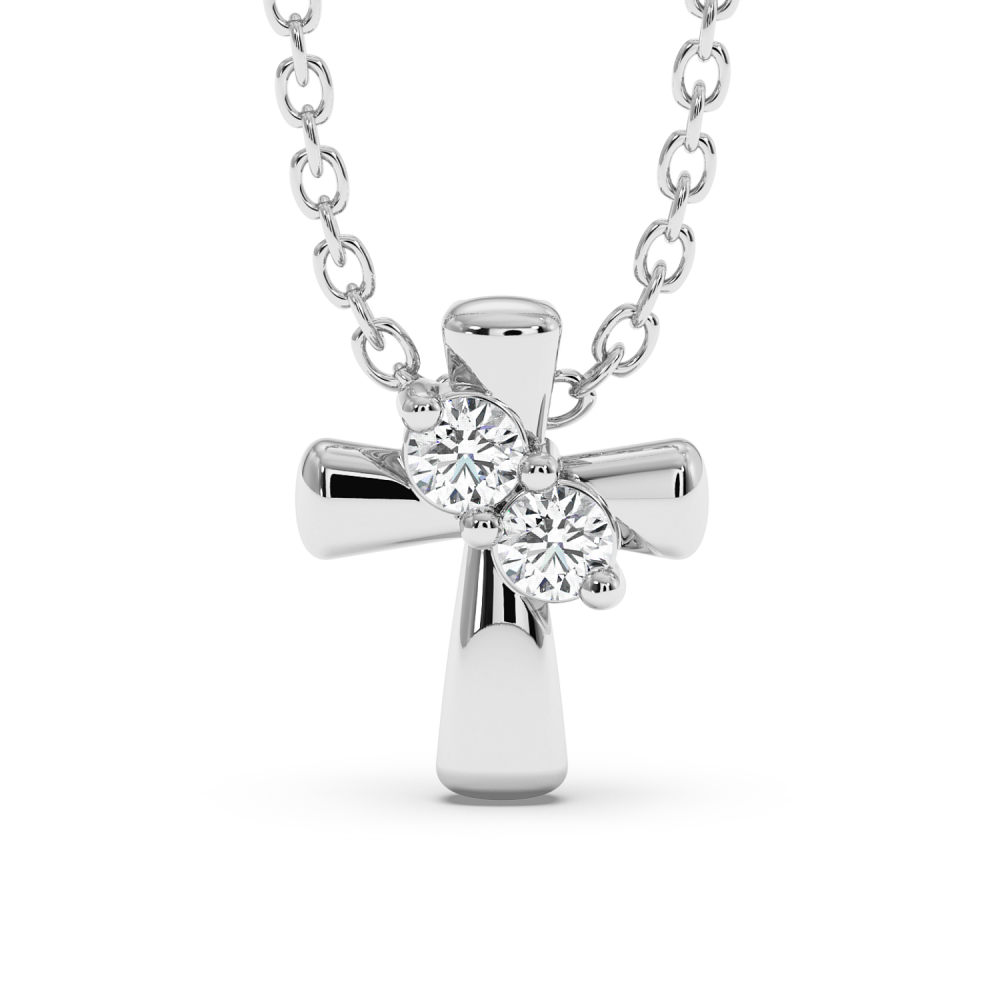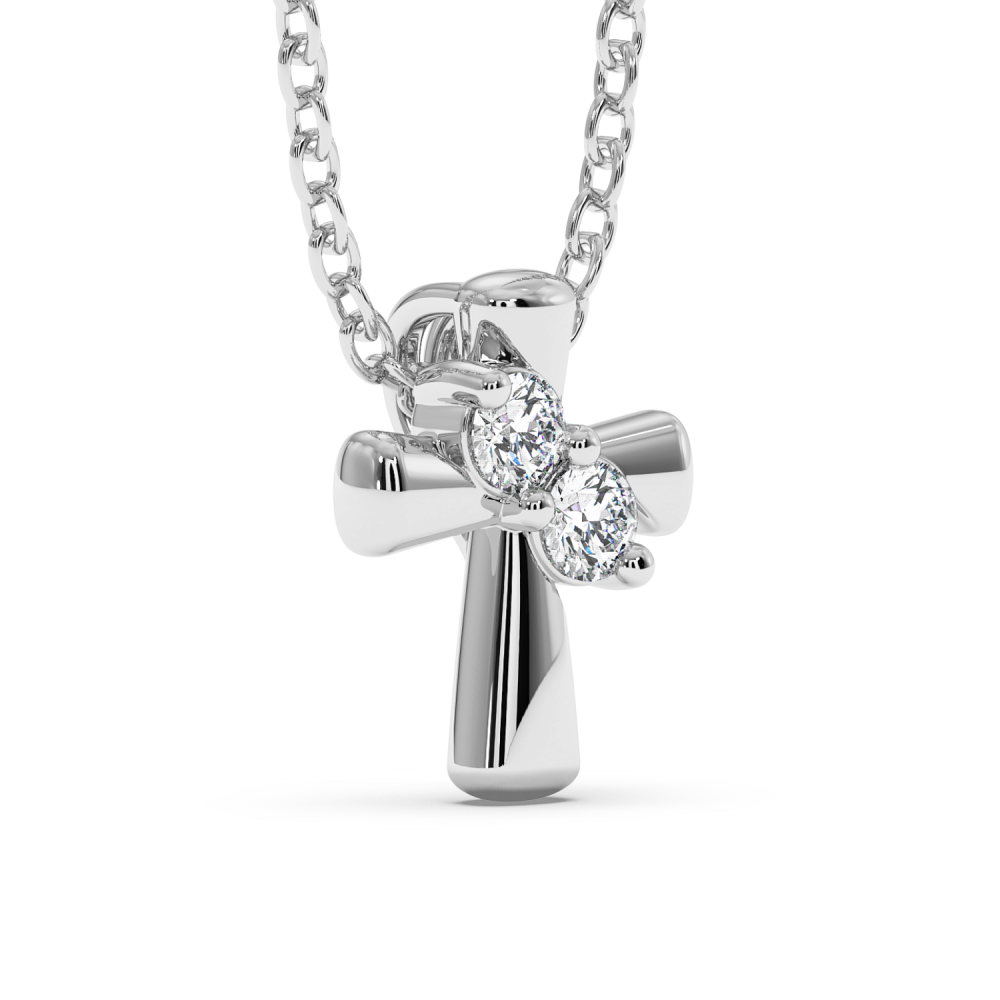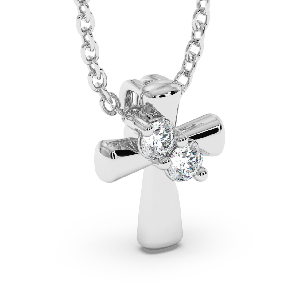 14 K white gold cross pendant with 0.07 ct diamond. The pendant weighs 2 grams. Pendant length is 9 mm. Go to "SPECIFICATIONS" for more details about this product.