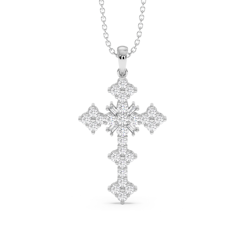 Review for:Cross Pendant with 0.08ct Baget Diamonds and 0.79ct Round Diamonds