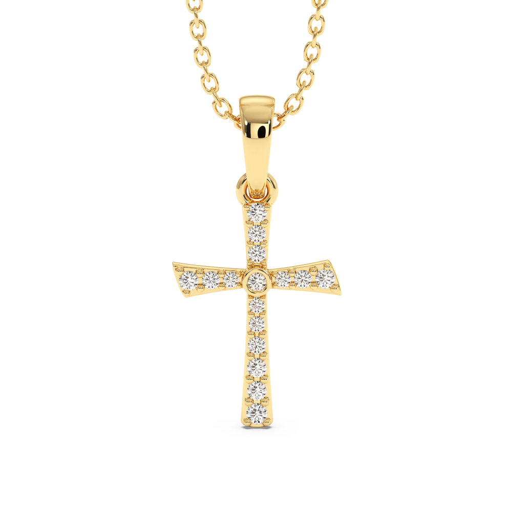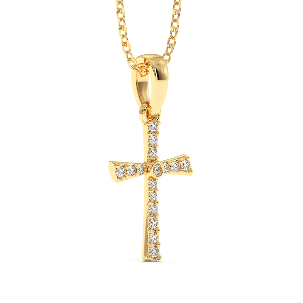 14 K white gold cross pendant with 0.10 ct diamonds. The weight of the cross is 2.26 grams. Go to "SPECIFICATIONS" for more details about this product. For an accurate diamond valuation, please refer to the chart below: