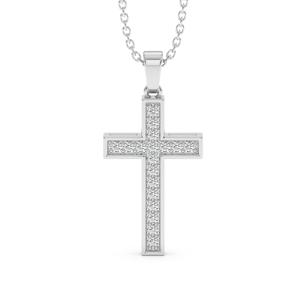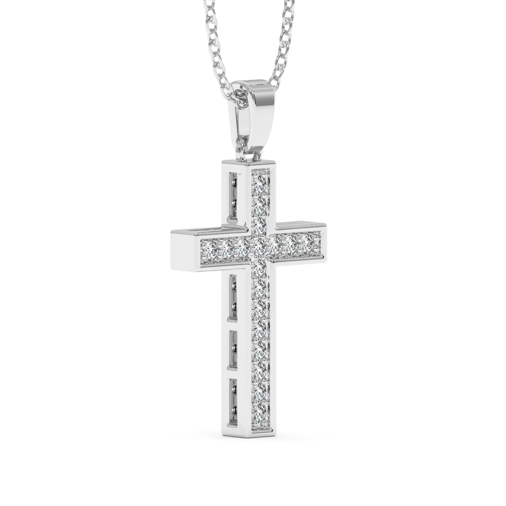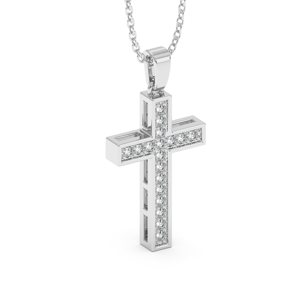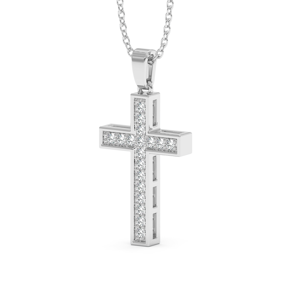 14 K white gold cross pendant with 0.18 ct diamonds. The weight of the cross is 3.42 grams. Go to "SPECIFICATIONS" for more details about this product. For an accurate diamond valuation, please refer to the chart below: