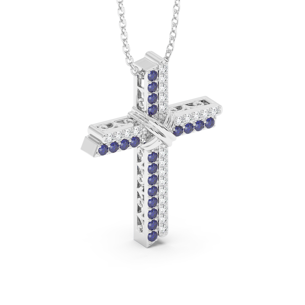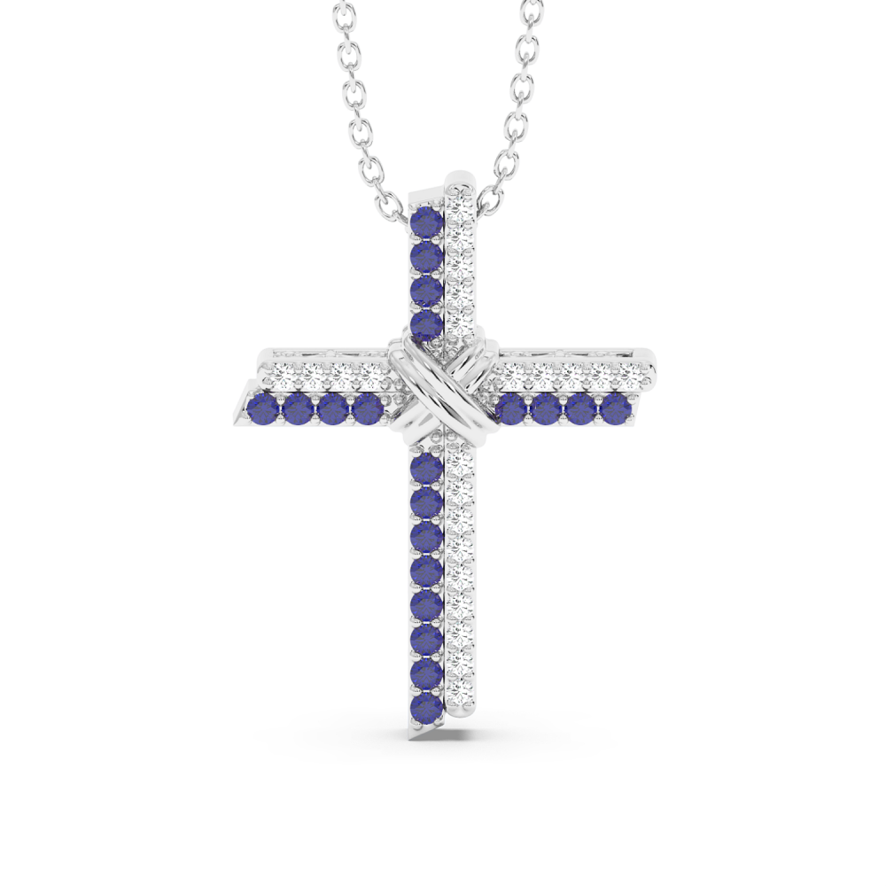 14K gold cross pendant with 0.23ct diamonds and 0.20ct tanzanite. Weight is approximately 2.40 grams. The pendant can also be made to order in 18K yellow or rose gold. We can modify the design according to your budget. We can choose the characteristics of the diamonds (cut, color, clarity,...