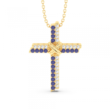 14K gold cross pendant with 0.23ct diamonds and 0.20ct tanzanite. Weight is approximately 2.40 grams.
