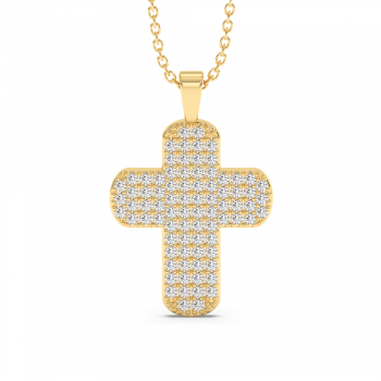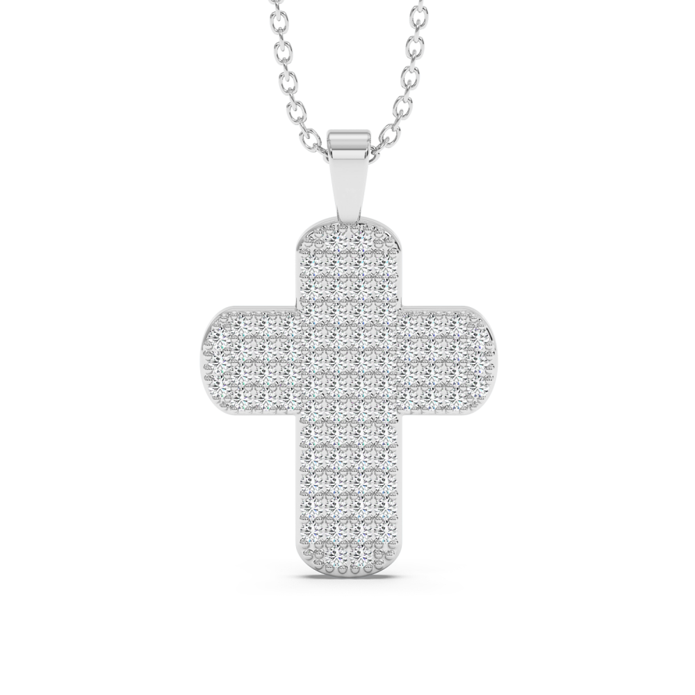 14 K white gold cross pendant with 0.65 ct diamonds. The weight of the necklace is 5.93 grams.