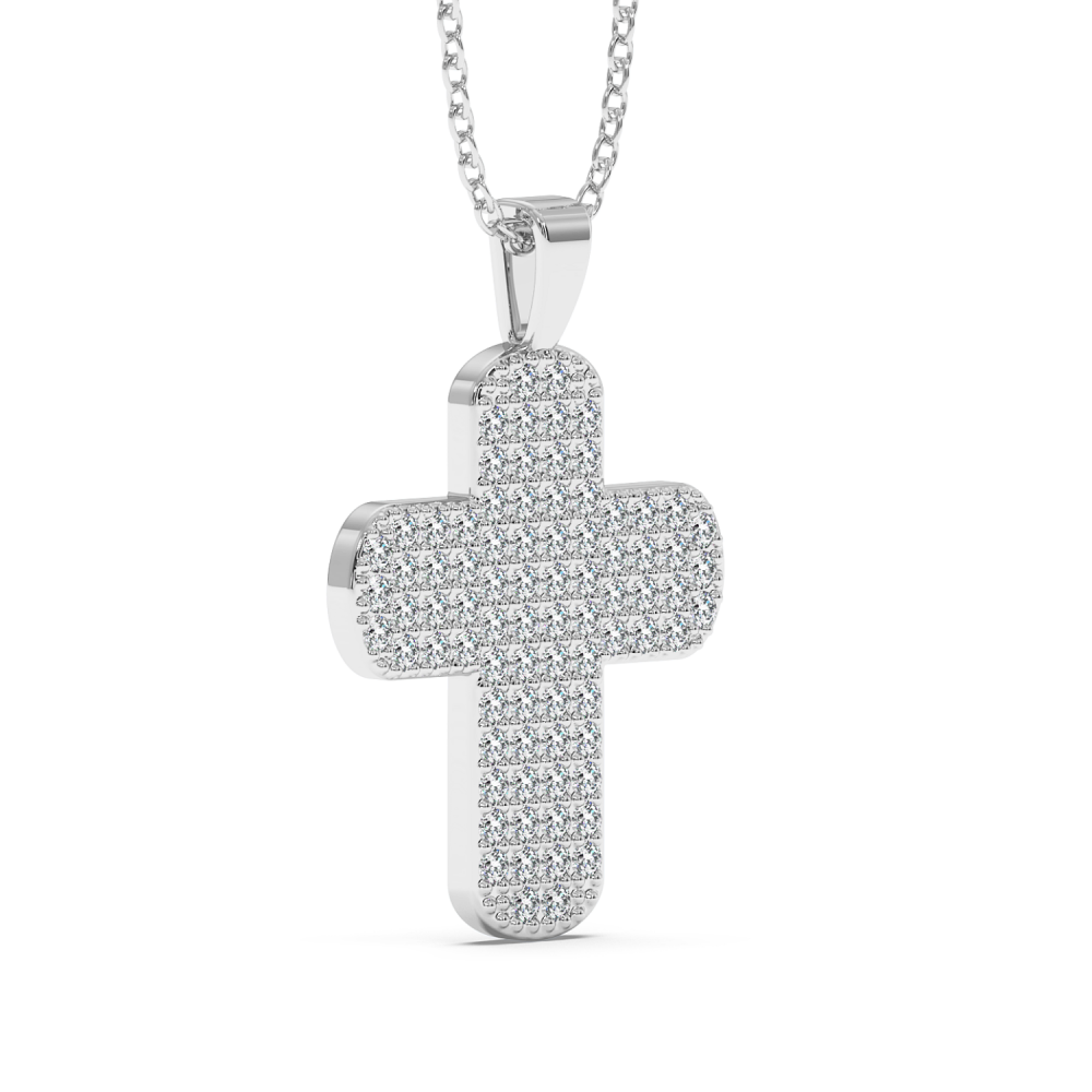 14 K white gold cross pendant with 0.65 ct diamonds. The weight of the necklace is 5.93 grams. Go to "SPECIFICATIONS" for more details about this product. For an accurate diamond valuation, please refer to the chart below: