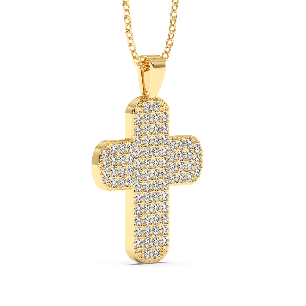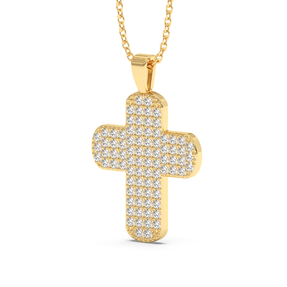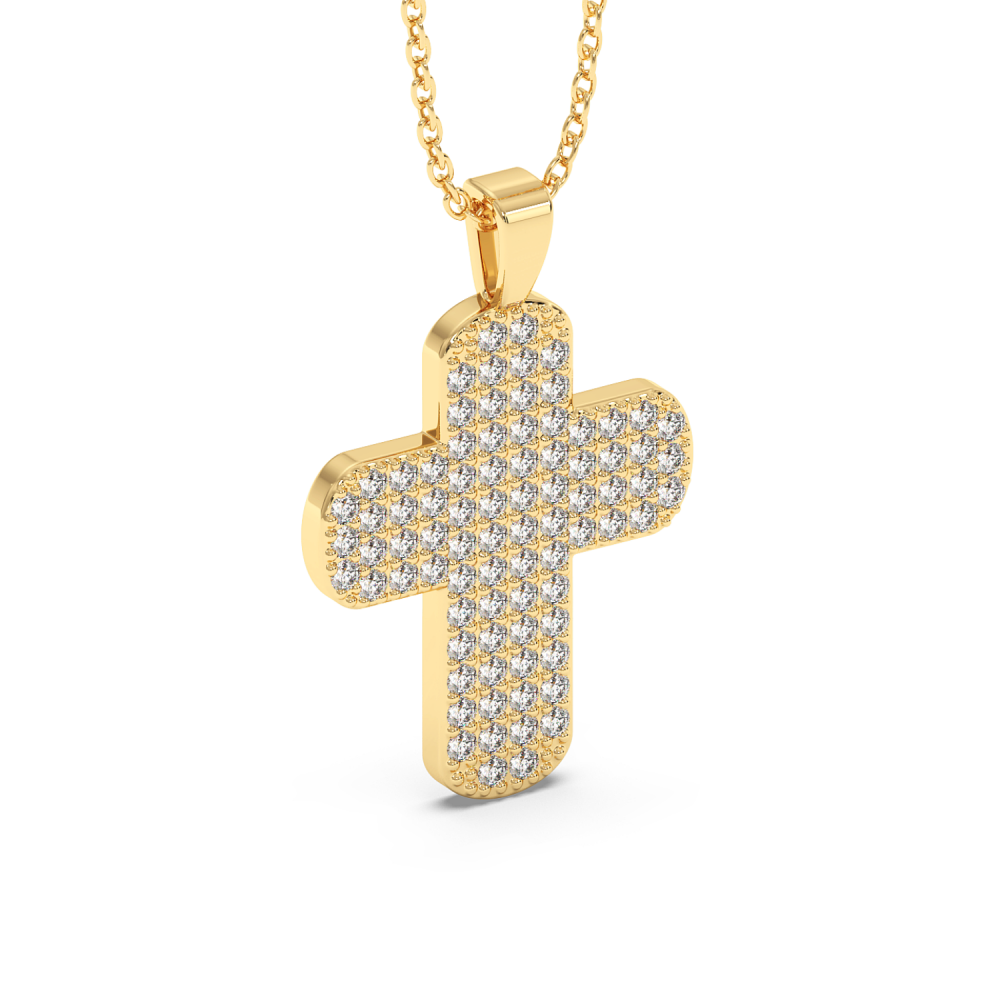 14 K white gold cross pendant with 0.65 ct diamonds. The weight of the necklace is 5.93 grams.