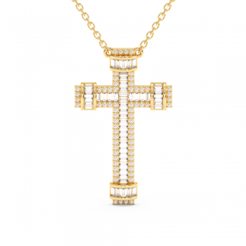 14 K gold cross pendant with 1.02ct baget diamonds and 0.26ct round diamonds. The weight of the cross is approximately 4.20 grams. Go to "SPECIFICATIONS" for more details about this product.