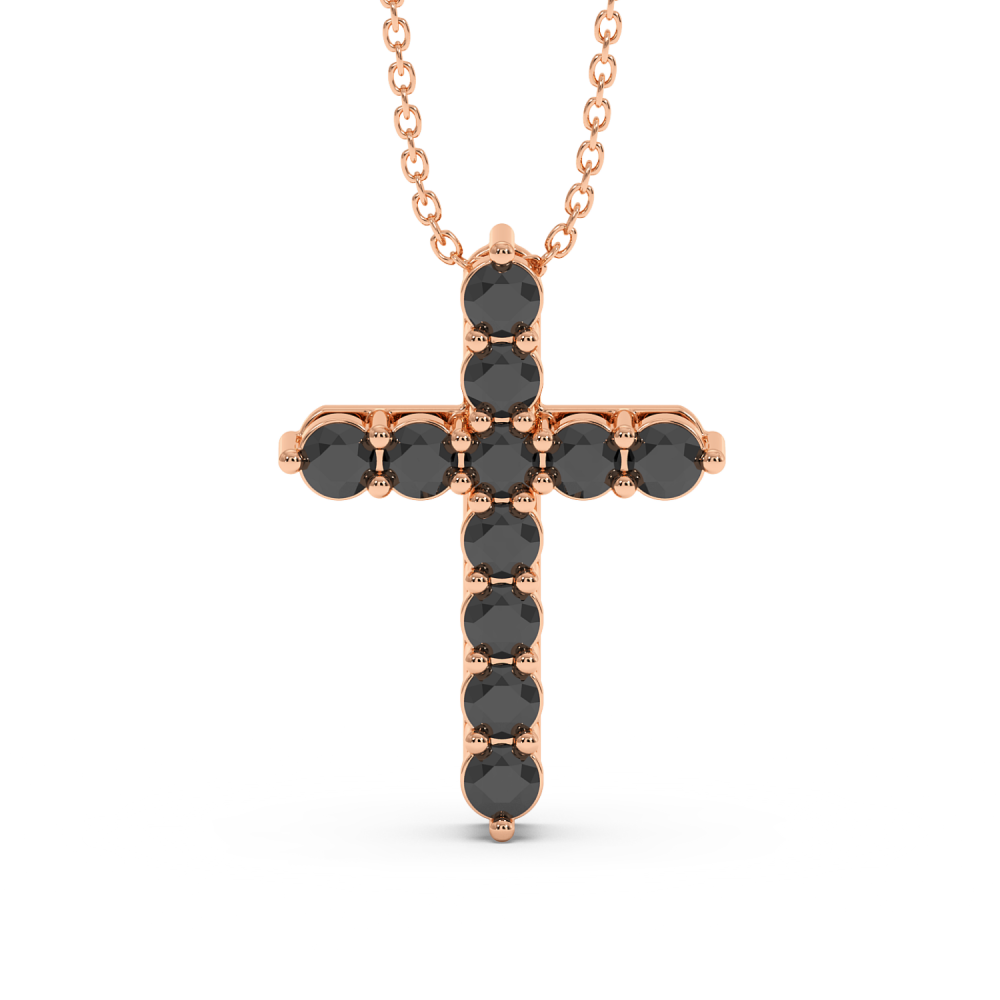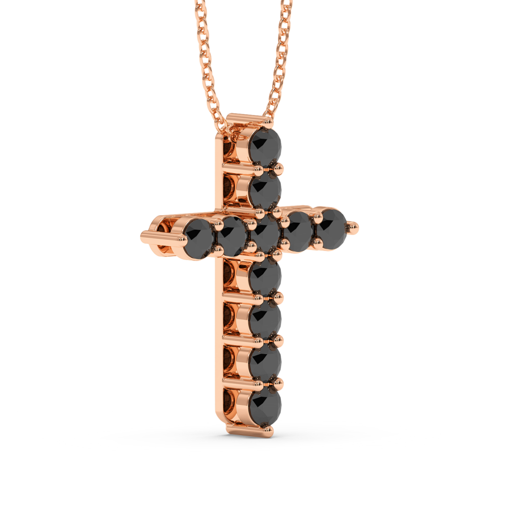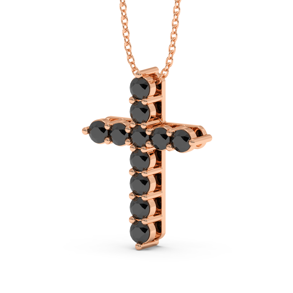14 K gold cross pendant with 1.10 ct black diamonds. The weight of the cross is about 6.00 grams, the size is 23mm.