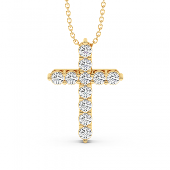 14 K gold cross pendant with 1.10 ct diamonds. The weight of the cross is about 6.00 grams, the size is 23mm.