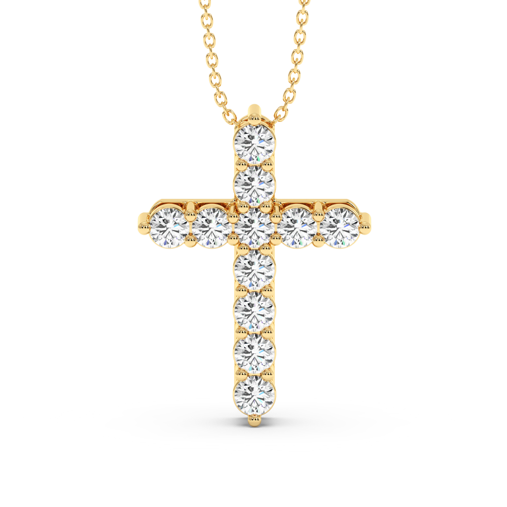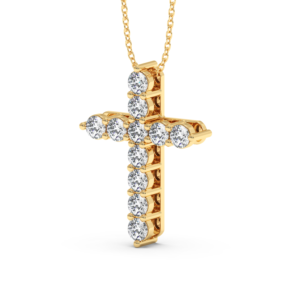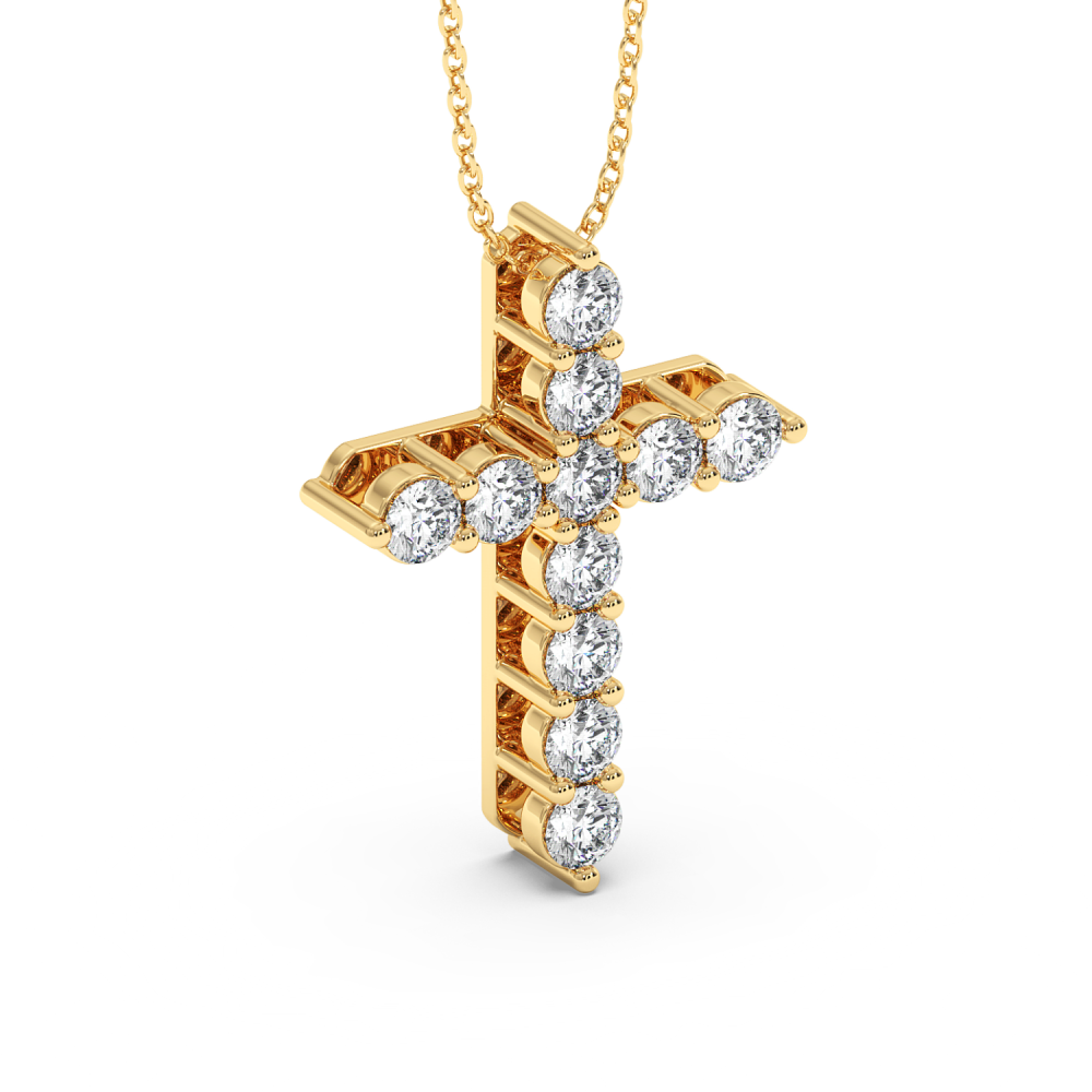 14 K gold cross pendant with 1.65 ct diamonds. The weight of the cross is about 7.00 grams, the size is 27mm.