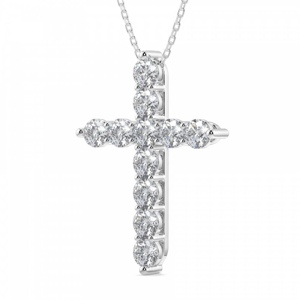 14 K white gold cross pendant with 3.33 ct diamonds. The weight of the necklace is 7.04 grams.