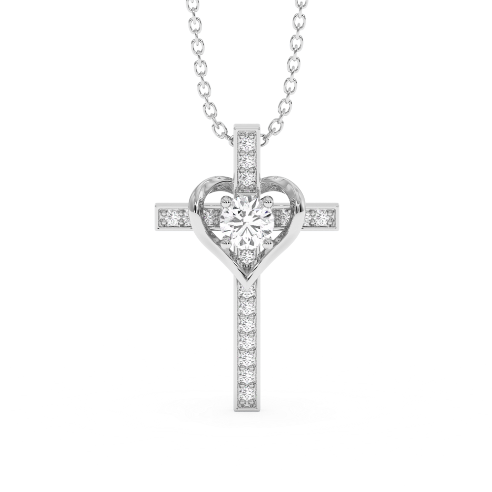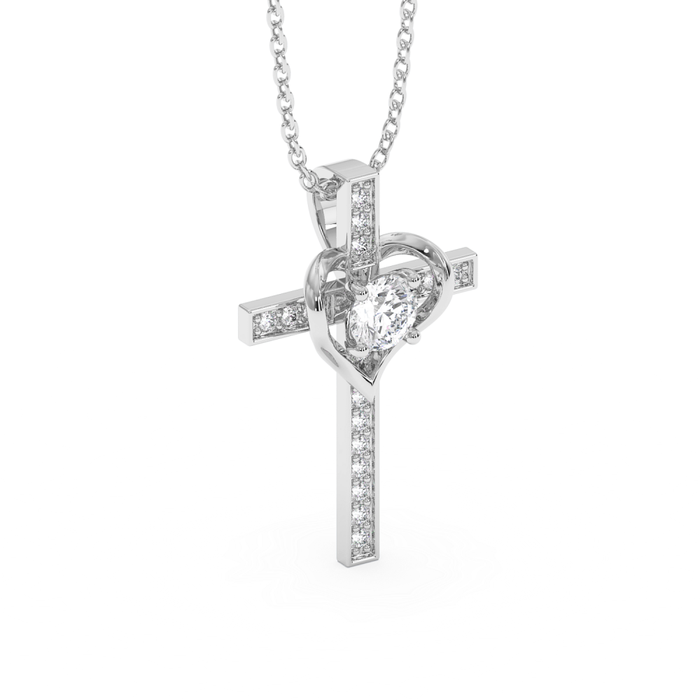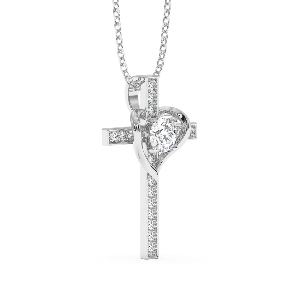 Cross pendant in 14 K gold, with 0.28ct center diamond and 0.39ct side diamonds. The weight of the cross is approximately 1.30 grams.