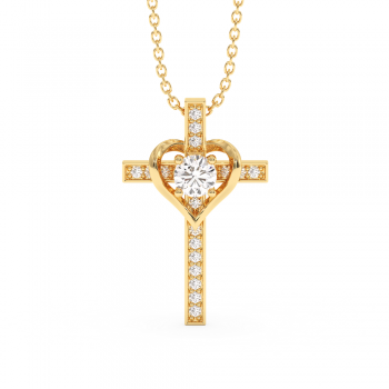 Cross pendant in 14 K gold, with 0.28ct center diamond and 0.39ct side diamonds. The weight of the cross is approximately 1.30 grams. Go to "SPECIFICATIONS" for more details about this product.