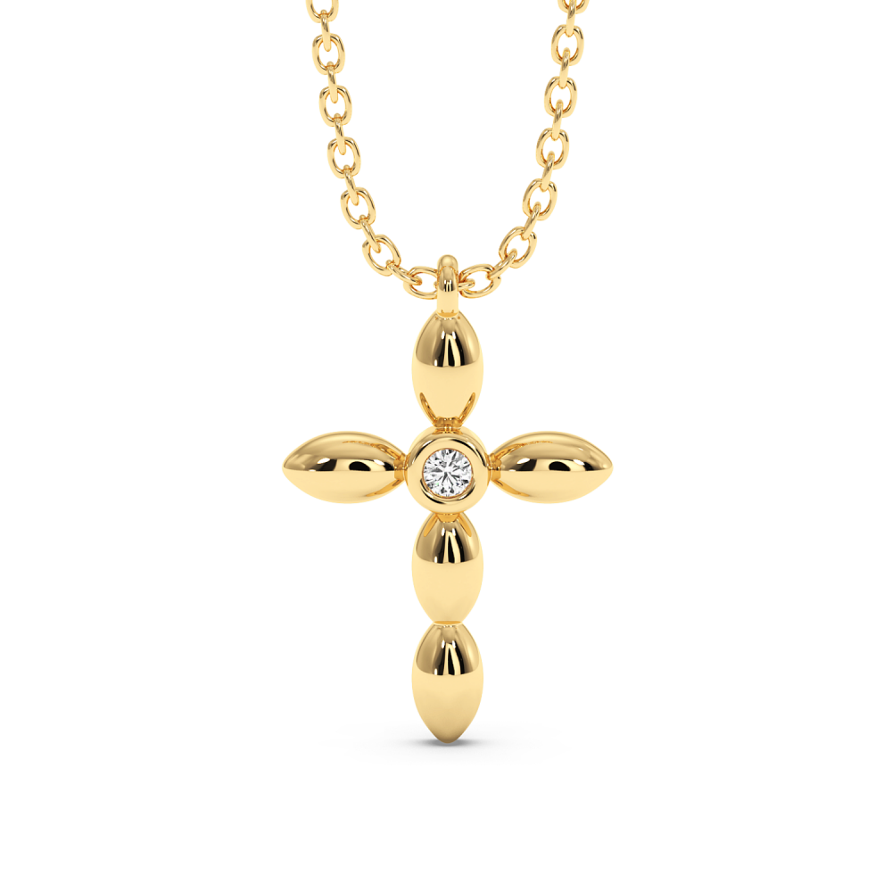 14 K white gold cross pendant with 0.02 ct diamond. The weight of the necklace is 2.4 grams. The length of the cross is 1.5 cm Go to "SPECIFICATIONS" for more details about this product. For a correct diamond valuation, please refer to the chart below