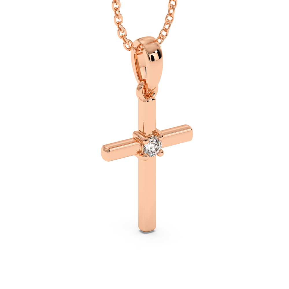 14 K white gold cross pendant with 0.05 ct diamond. The weight of the necklace is 1.89 grams.