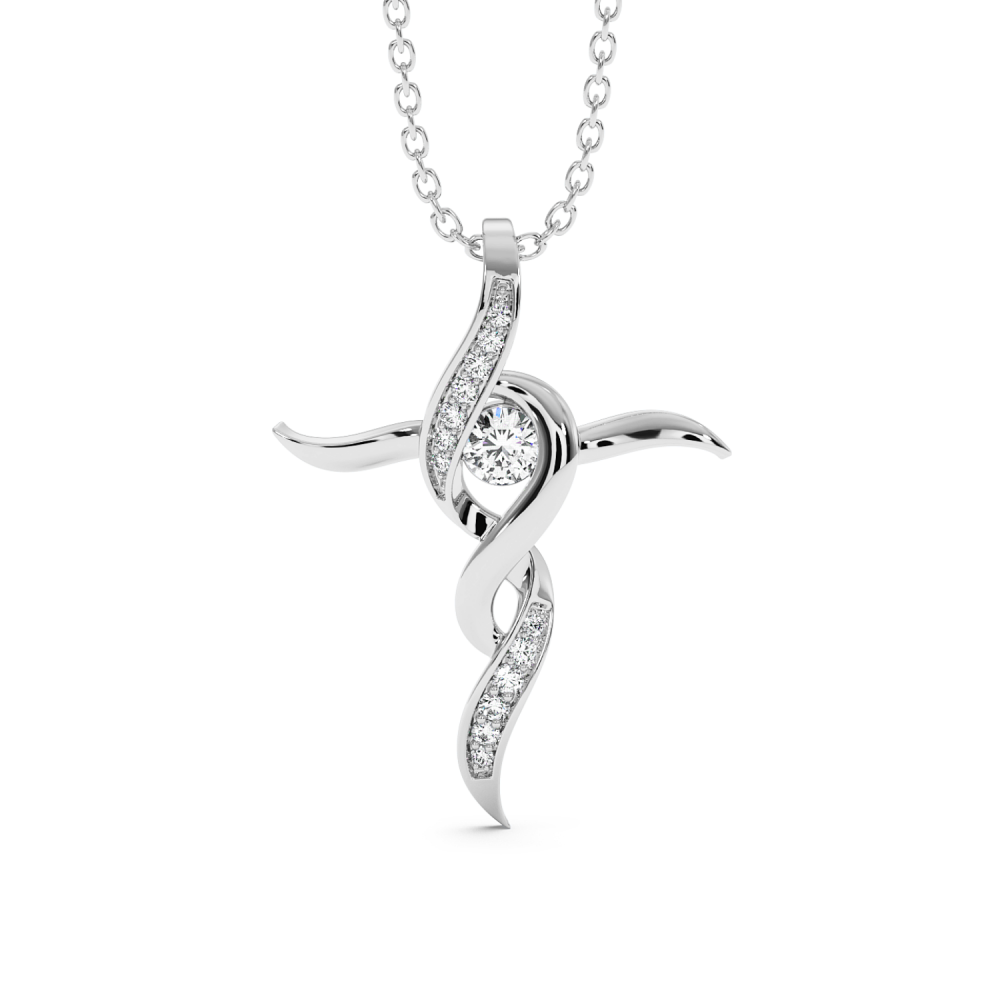 14 K gold cross pendant with 0.16 ct diamonds. The weight of the cross is approximately 2.60 grams.