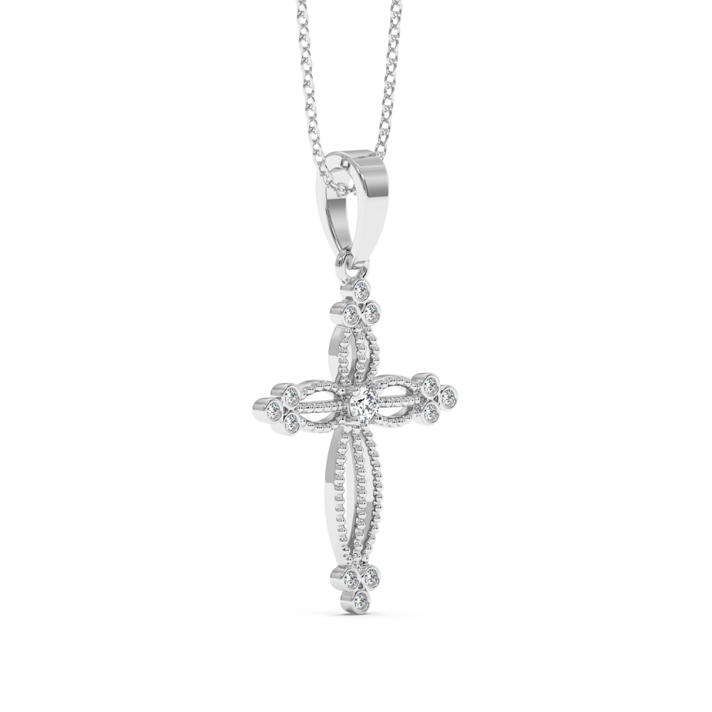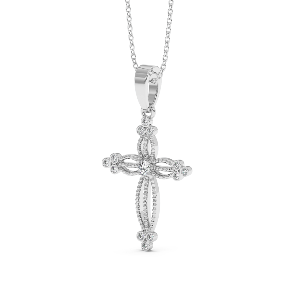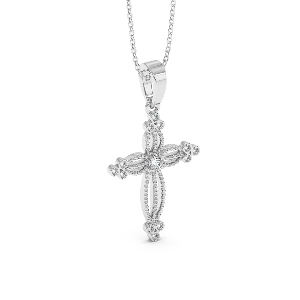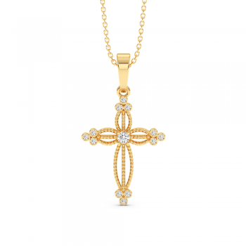 Cross pendant in 14 K gold with 0.20 ct diamonds. The weight of the cross is approximately 3.50 grams. Go to "SPECIFICATIONS" for more details about this product.