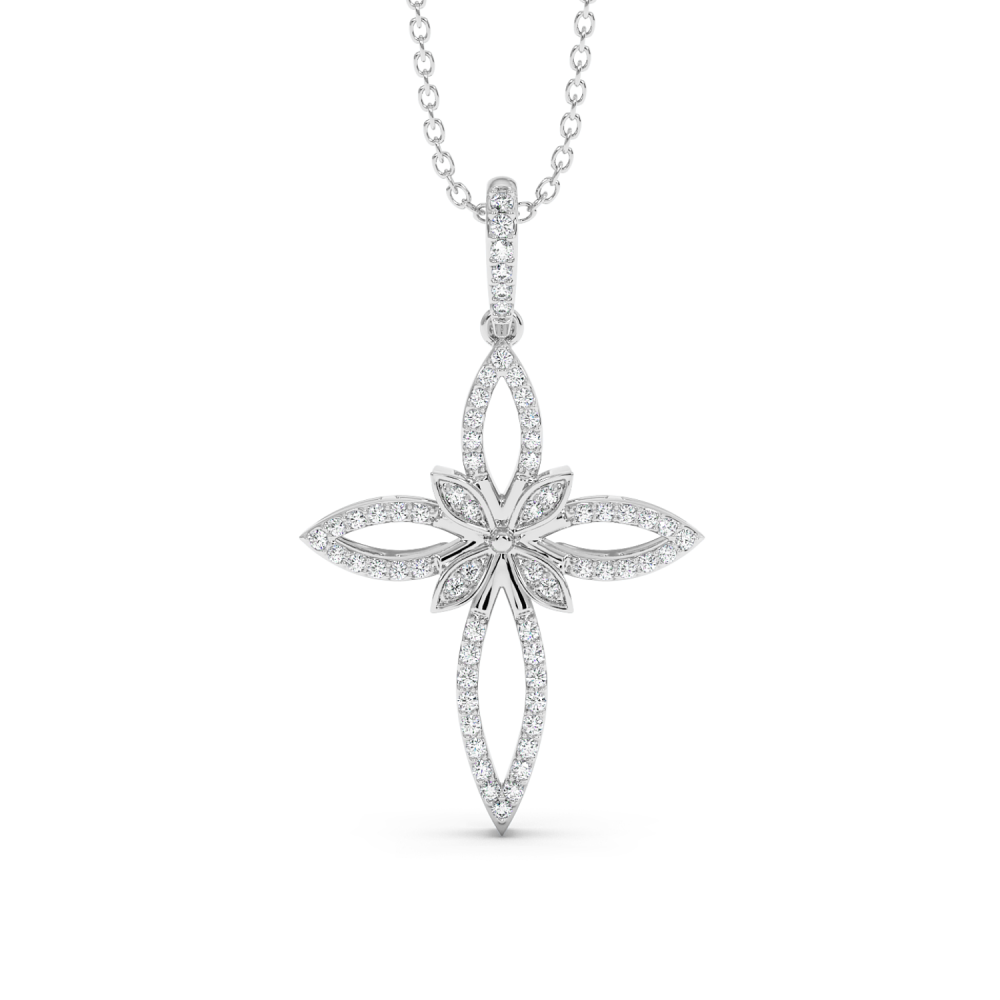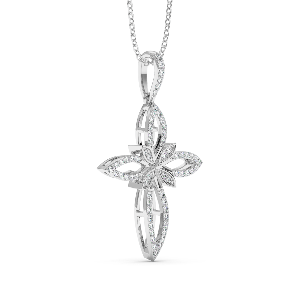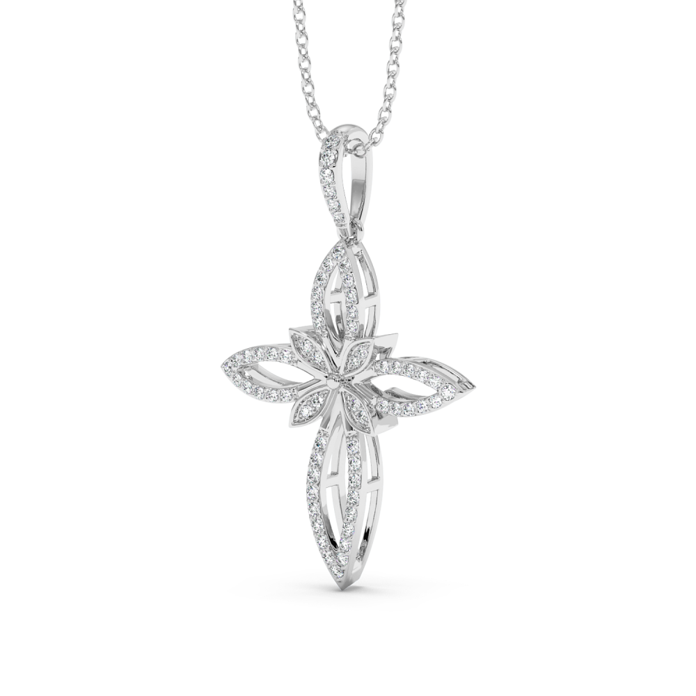 14 K white gold cross pendant with 0.28ct diamonds. The weight of the cross is approximately 4 grams. Go to "SPECIFICATIONS" for more details about this product.