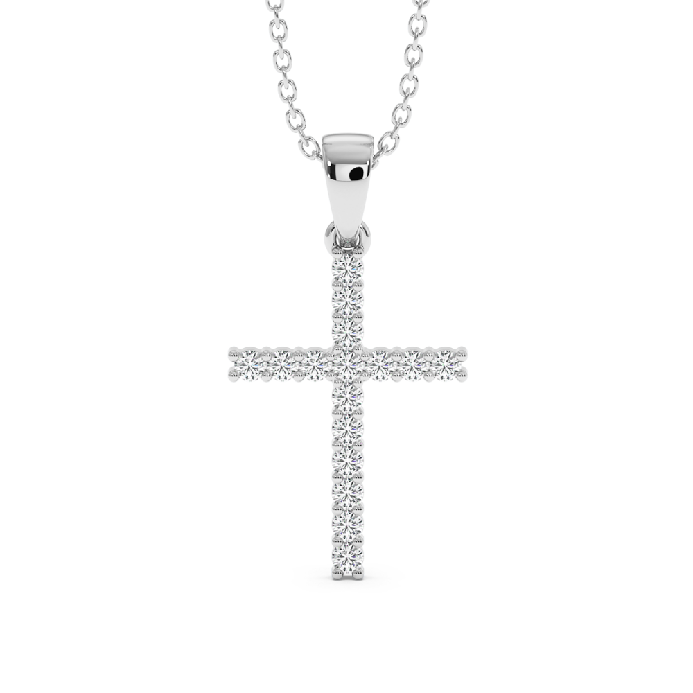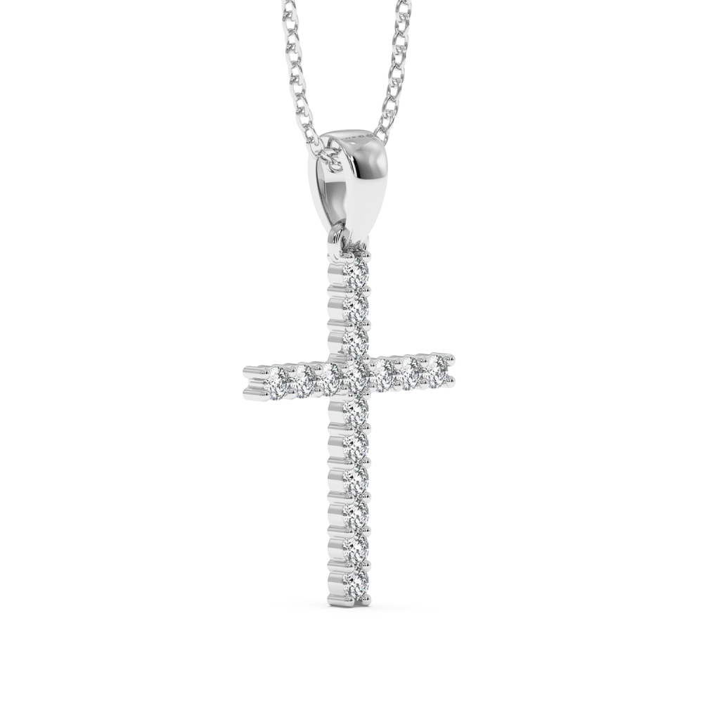 14 K white gold cross pendant with 0.37 ct diamonds. The weight of the necklace is approximately 3.76 grams.