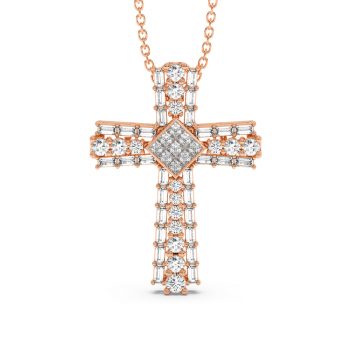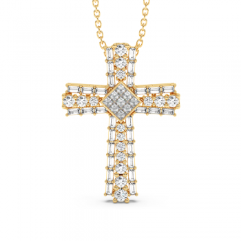 Cross Pendant with Round Diamonds 0.37ct, Baget Diamonds 0.54ct and Princess Cut Diamonds 0.18ct