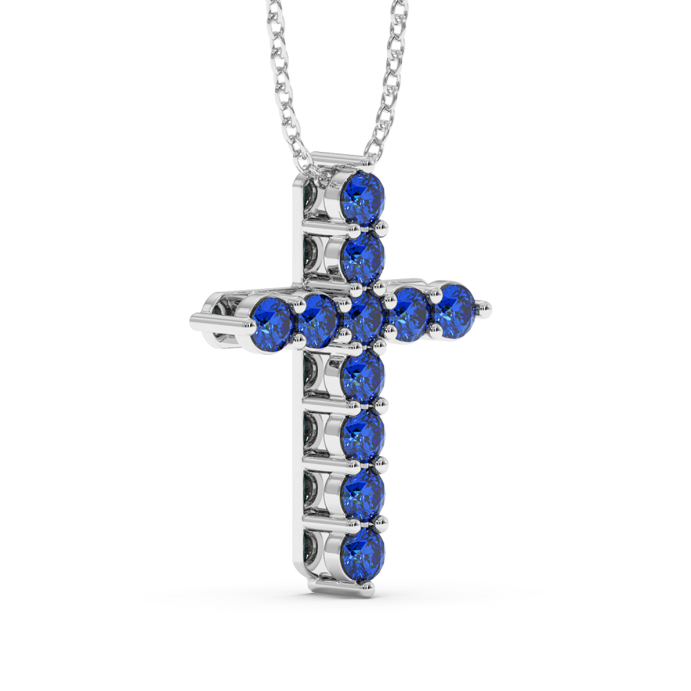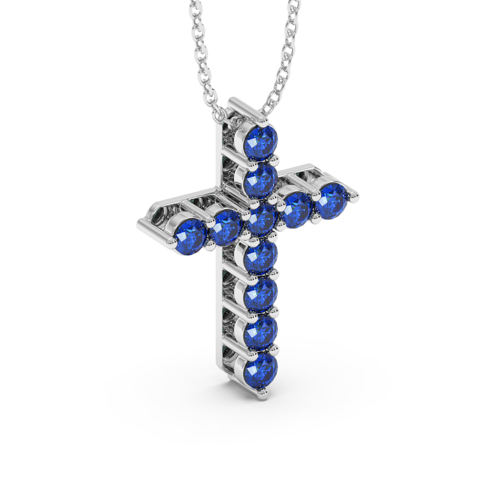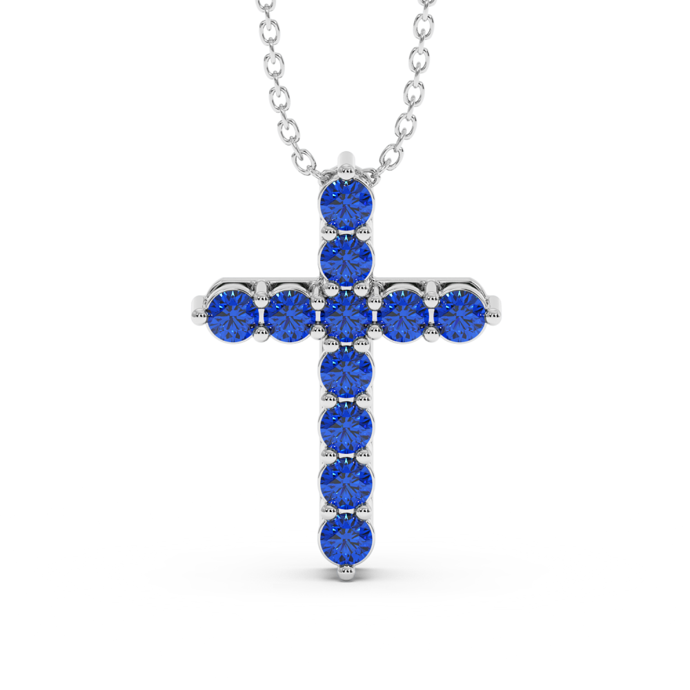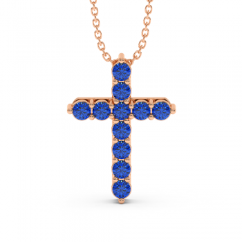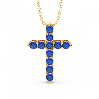 14 K gold cross pendant with 0.77 ct sapphire. Weight of the crucifix is about 3.50 grams, size is 21mm.