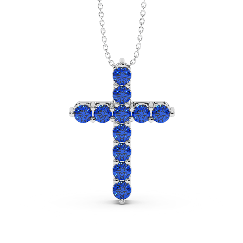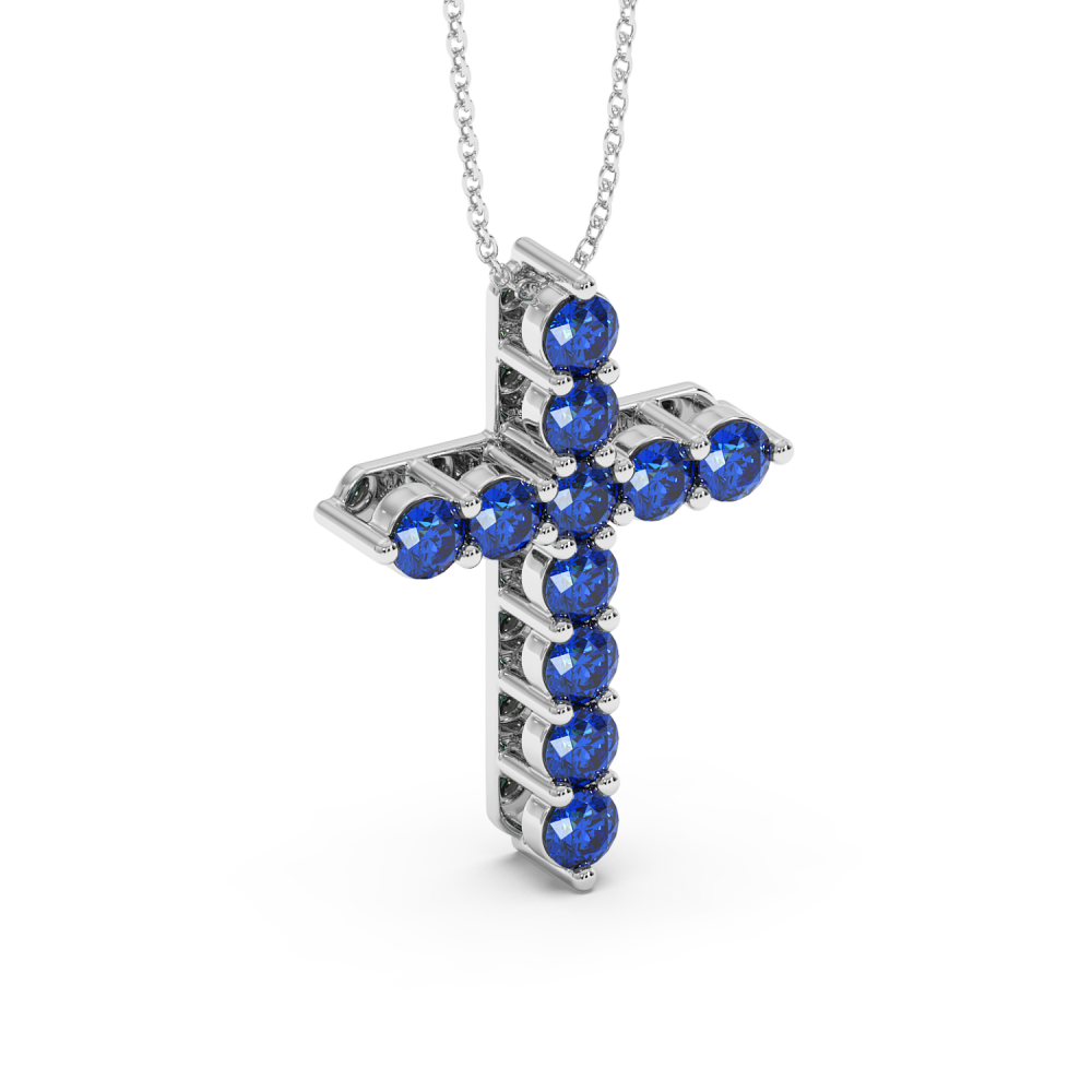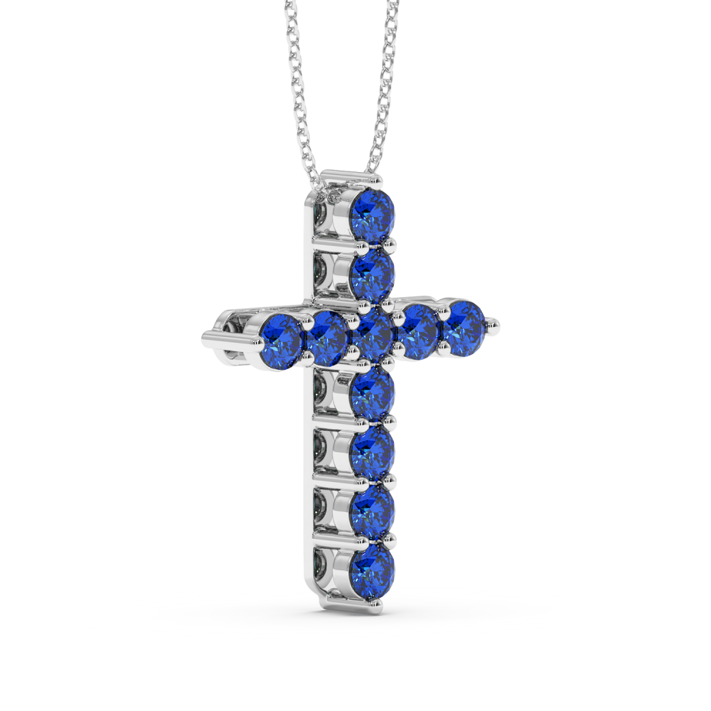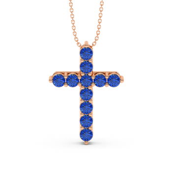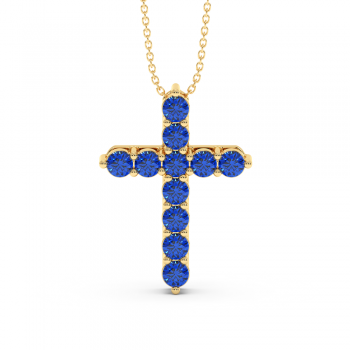14 K gold cross pendant with 2.20 ct. sapphire. Weight of the crucifix is about 8.50 grams, size is 29mm.
