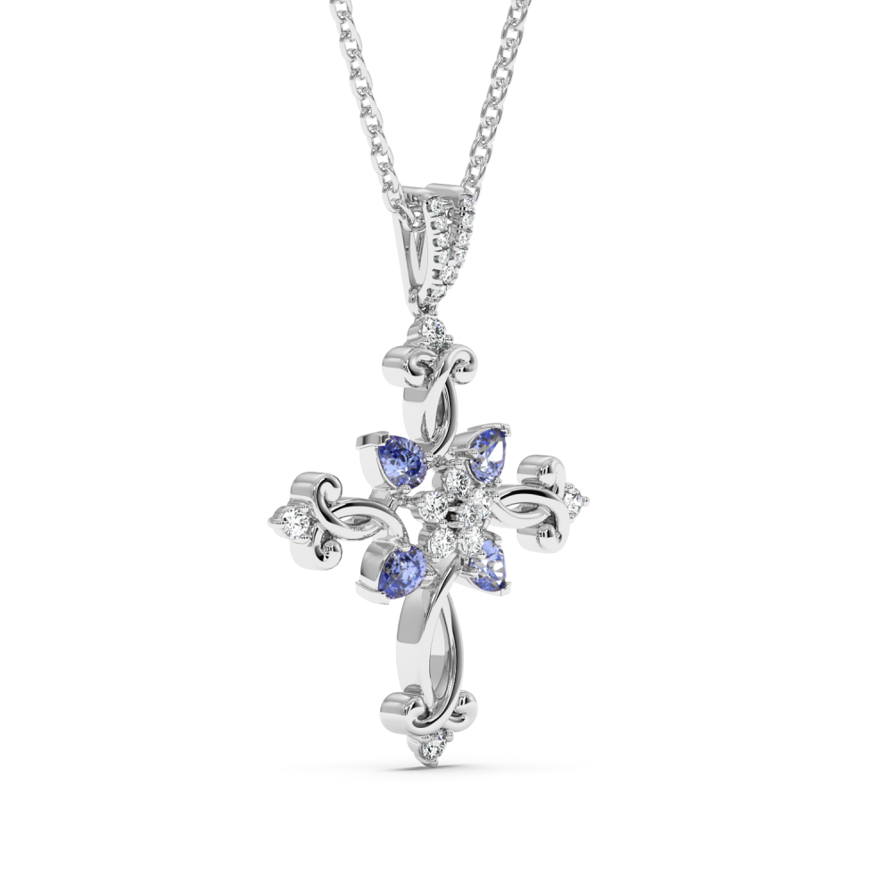 14 K gold cross pendant with 0.84ct tanzanite and 0.21ct diamonds. Weight is approximately 5.67 grams. Go to "SPECIFICATIONS" for more details about this product.