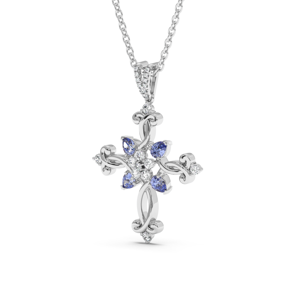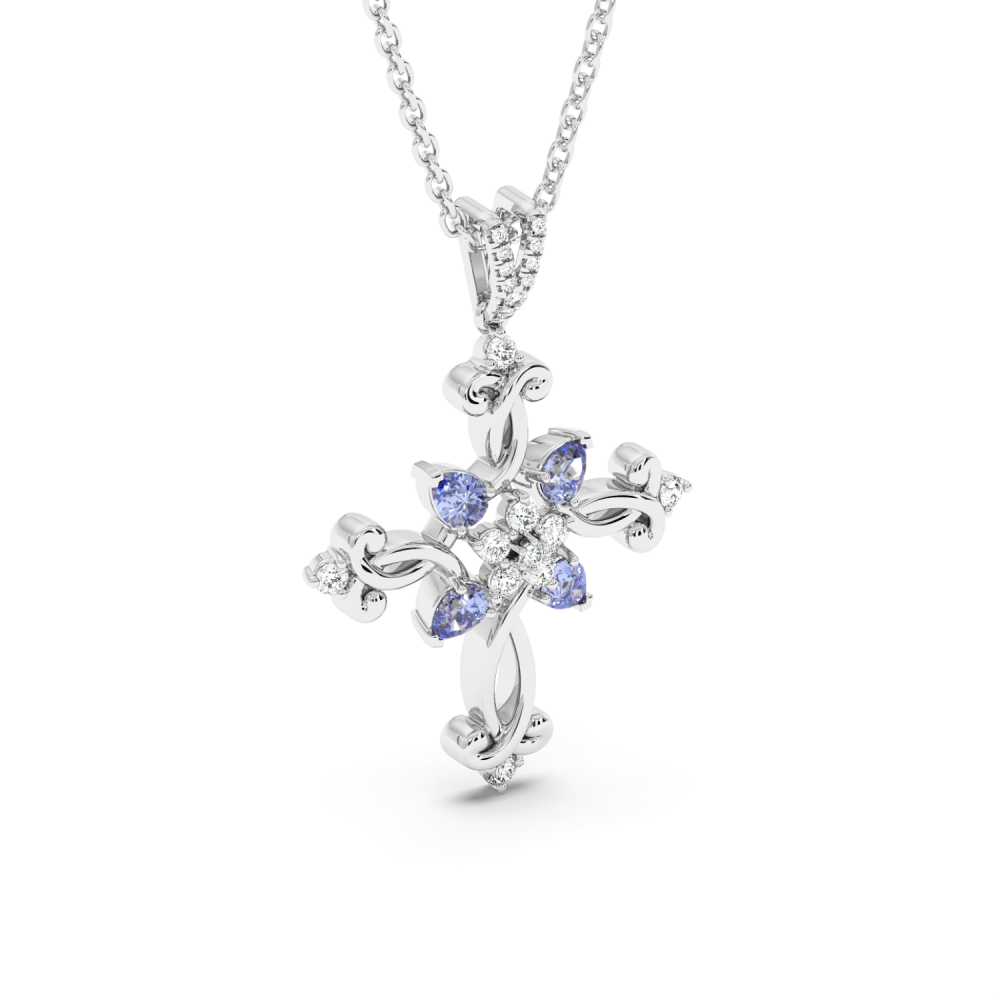 14 K gold cross pendant with 0.84ct tanzanite and 0.21ct diamonds. Weight is approximately 5.67 grams.