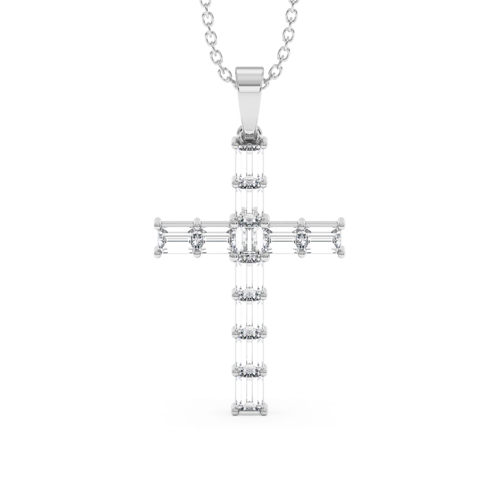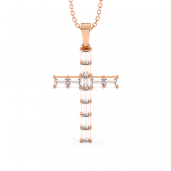 Cross pendant in 14 K gold with 1.11ct baget diamonds. The weight of the cross is approximately 1.80 grams. Go to "SPECIFICATIONS" for more details about this product.