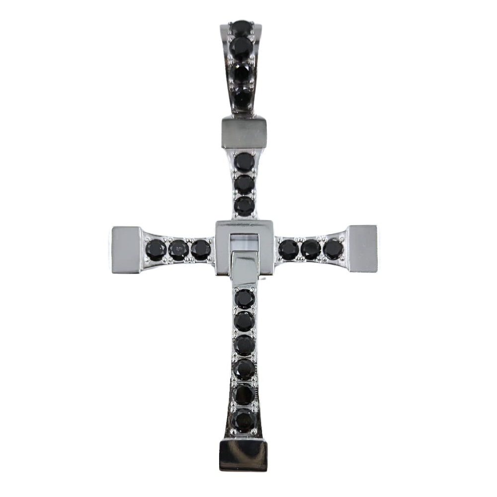 Diesel Cross pendant in 14 K white gold with 8.01 ct black diamonds. The weight of the pendant is approx 46.21 grams.