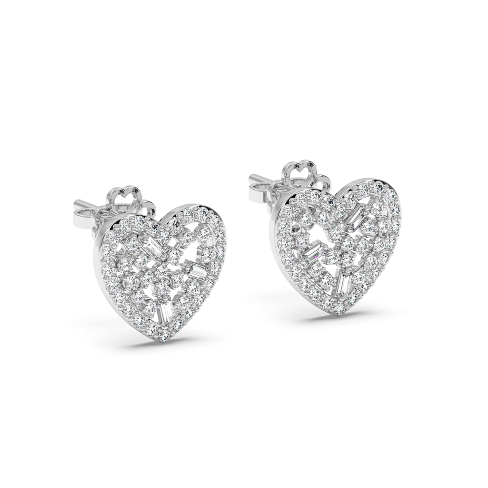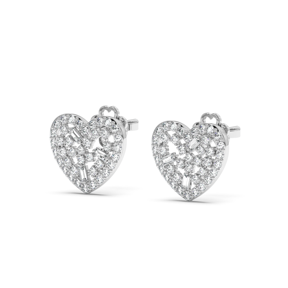 14 K white gold earrings with baguette diamonds of 0.08 ct and round diamonds of 0.41 ct. The weight of the earrings is 2.97 grams.