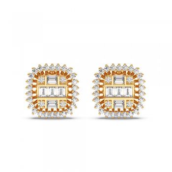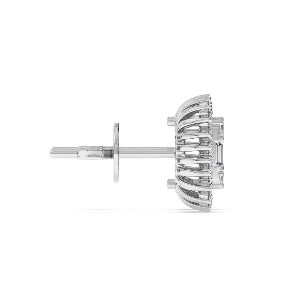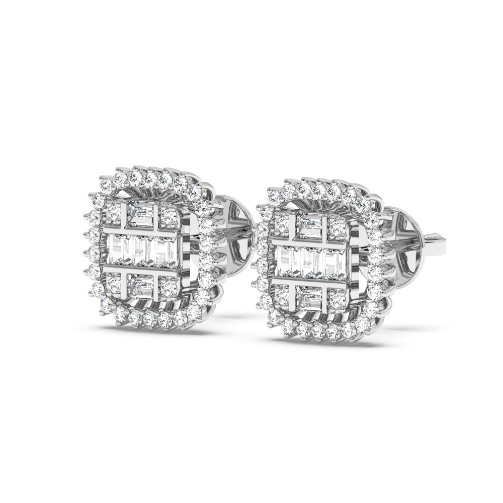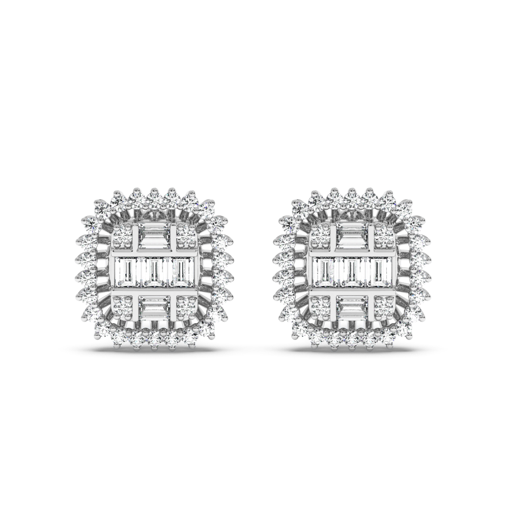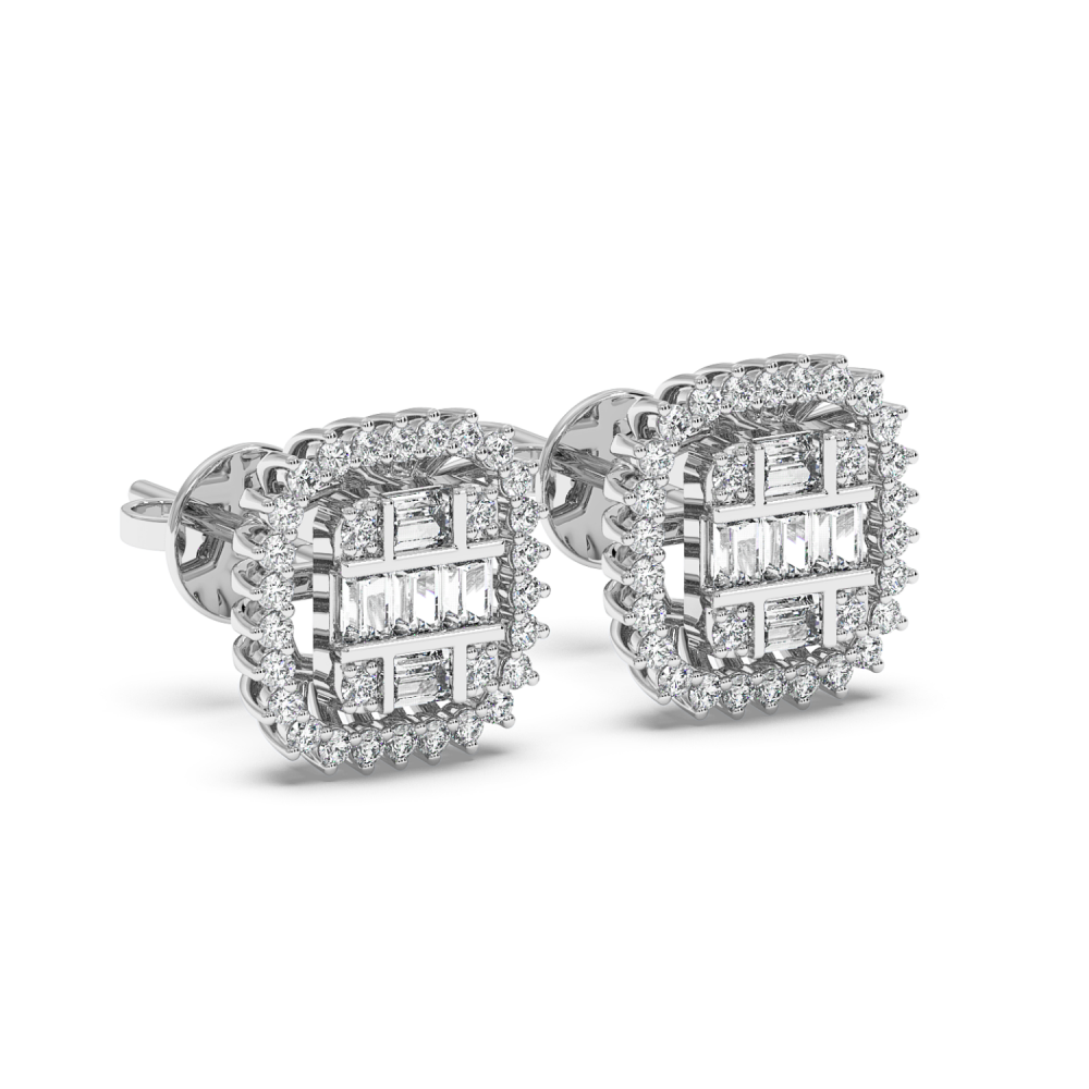 14 K white gold earrings, with 0.11 ct baget diamonds and 0.25 ct round diamonds. The weight of the earrings is 2.19 grams.