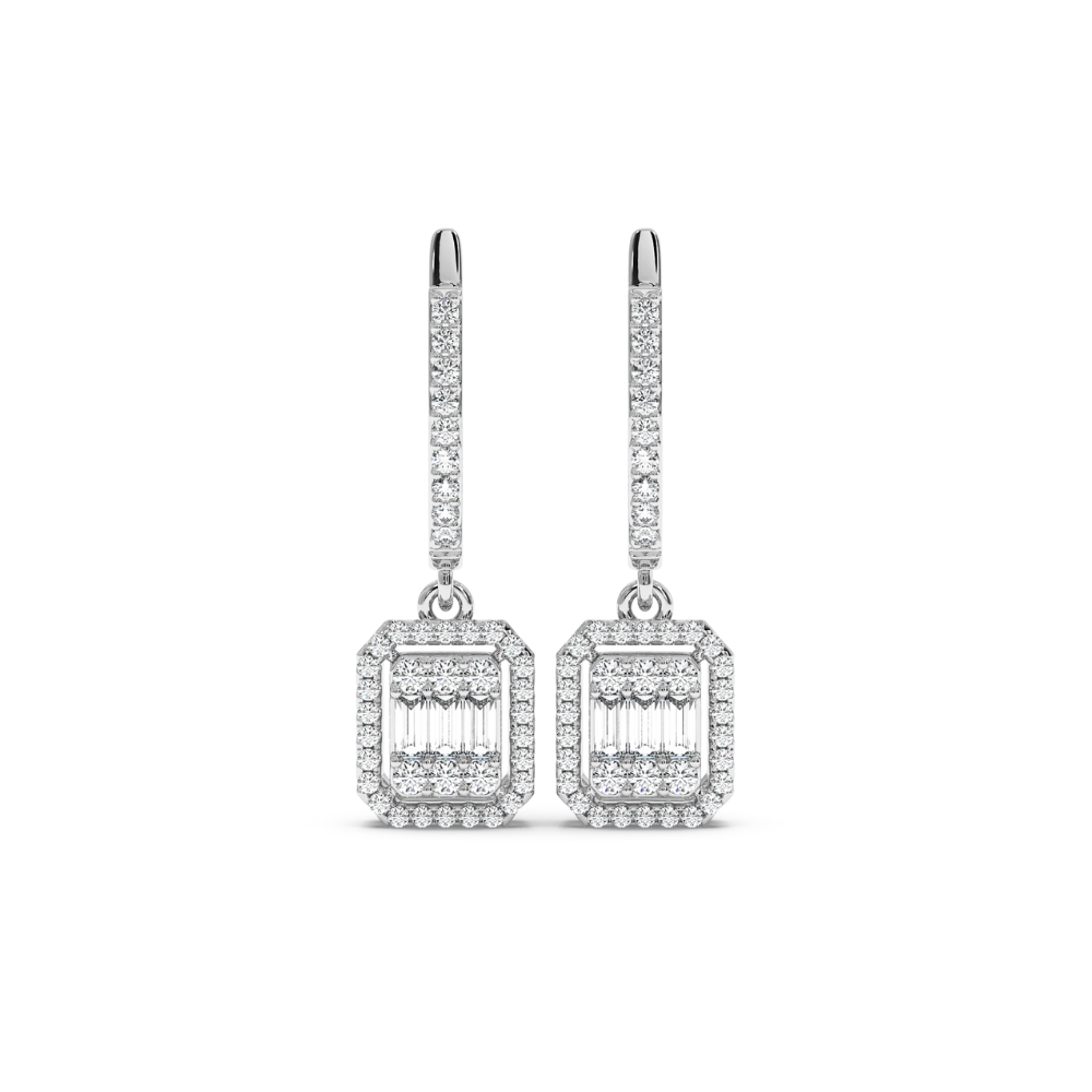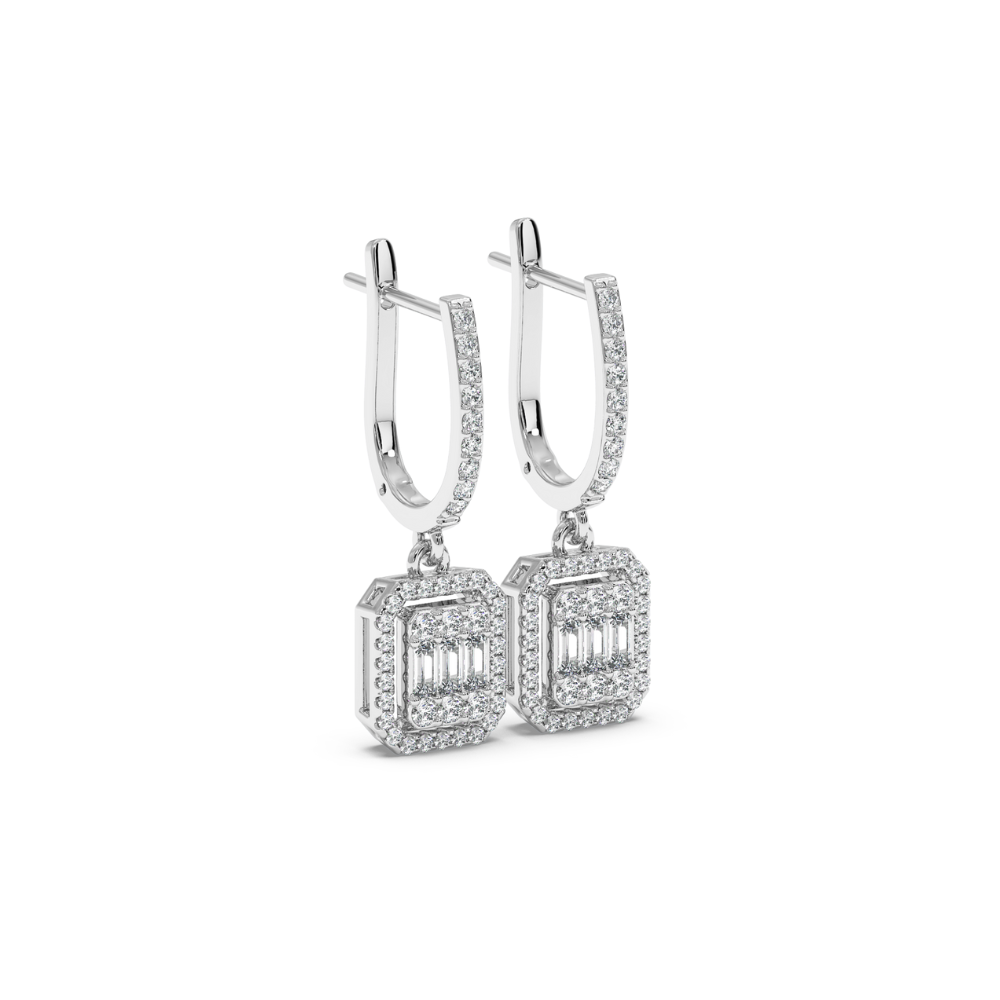 Earrings with 0.15 ct baguette and 0.46 ct round diamonds