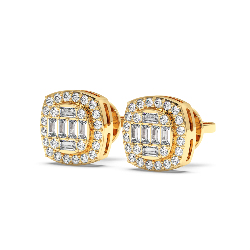 14 K white gold earrings with baget diamonds of 0.25 ct. and round diamonds of 0.38 ct. The earrings weigh 3.53 grams. Go to "SPECIFICATIONS" for more details about this product. For a correct diamond valuation, please refer to the chart below: