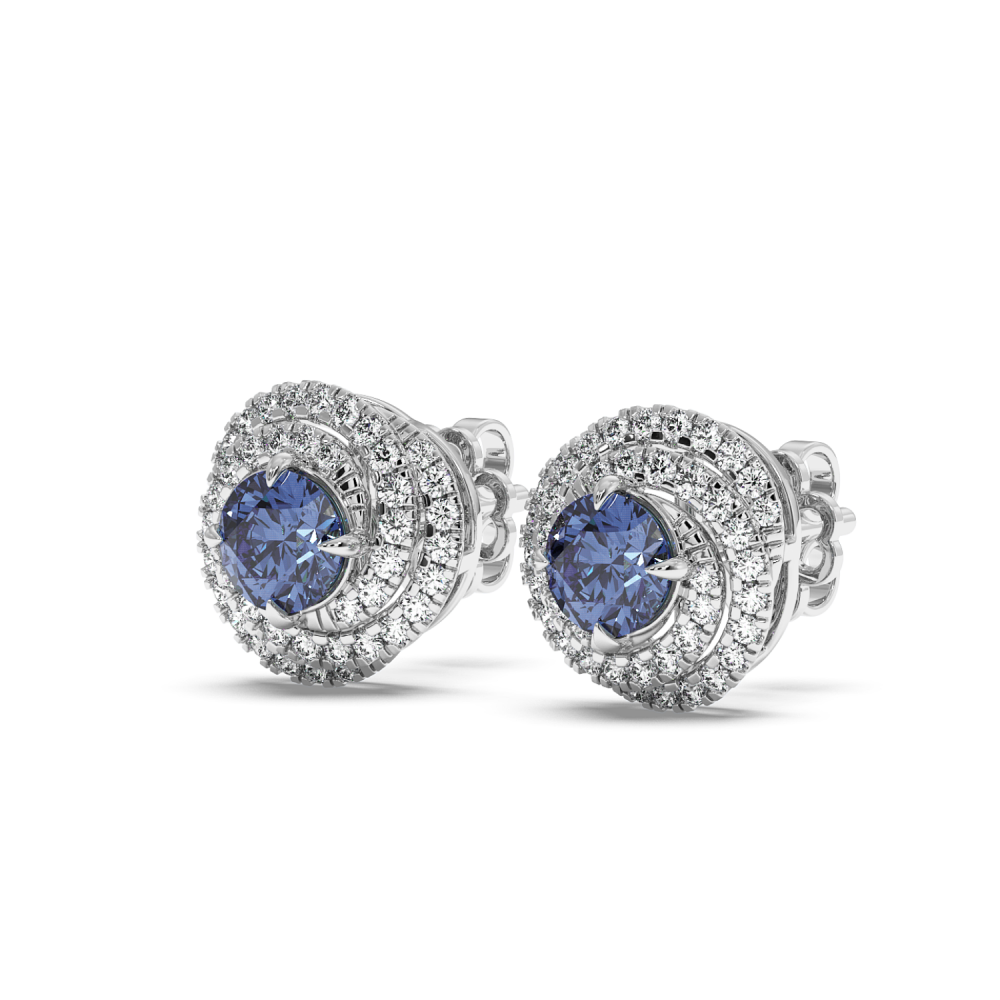 14K white gold earrings with 0.42 ct diamonds and 1.00 ct Tanzanite. The weight of the earrings is approx 3 grams. 10 mm in diameter