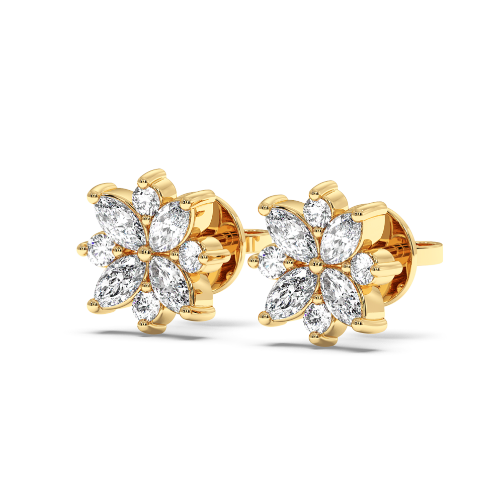 14 K white gold earrings with 0.60 ct marquise diamonds and 0.17 ct round diamonds. The weight of the earrings is 2.25 grams. Go to "SPECIFICATIONS" for more details about this product.