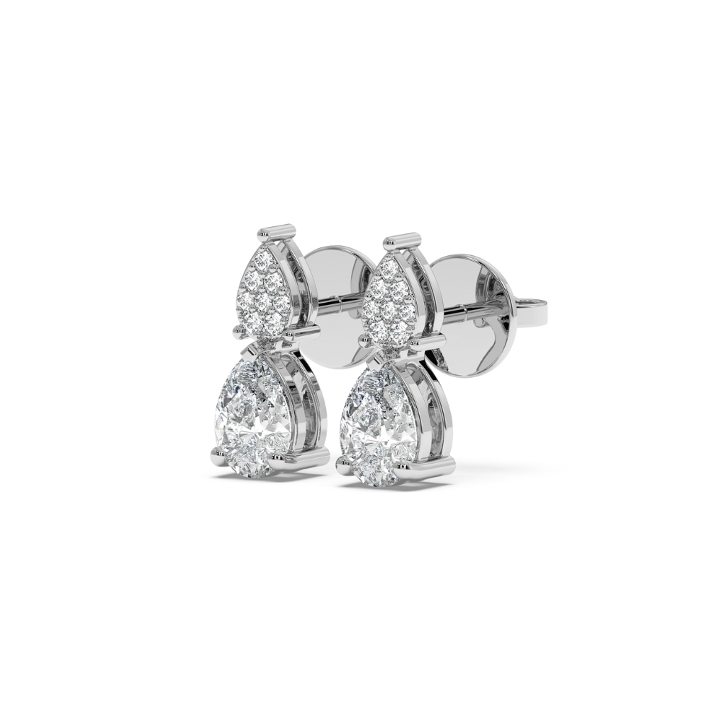 14 K yellow gold earrings with 0.71 ct Pear Diamonds and 0.06 ct Diamonds. The weight of the earrings is approx 2.00 grams. The earrings are available in white, yellow or rose gold.