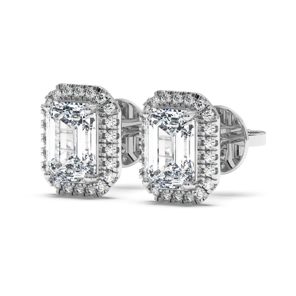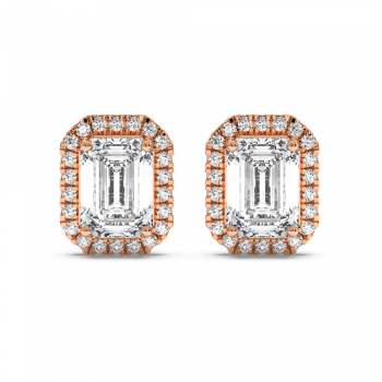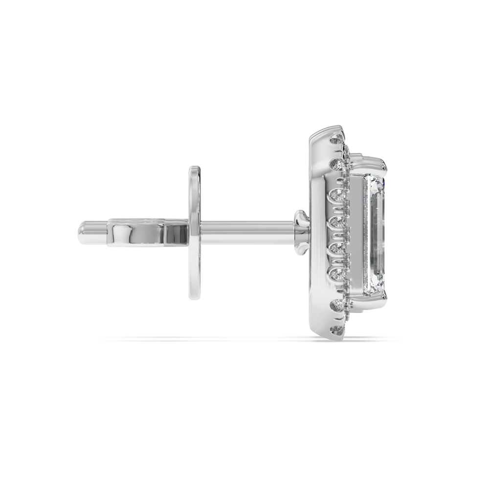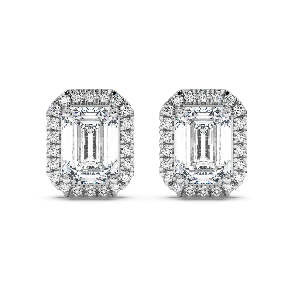 14k white gold earrings, 1.30 ct. emerald diamonds (0.65 ct. each) and 0.26 ct. round diamonds. The approximate weight of the earrings is approx 2.90 grams. The earrings can be made in white, yellow or rose gold.